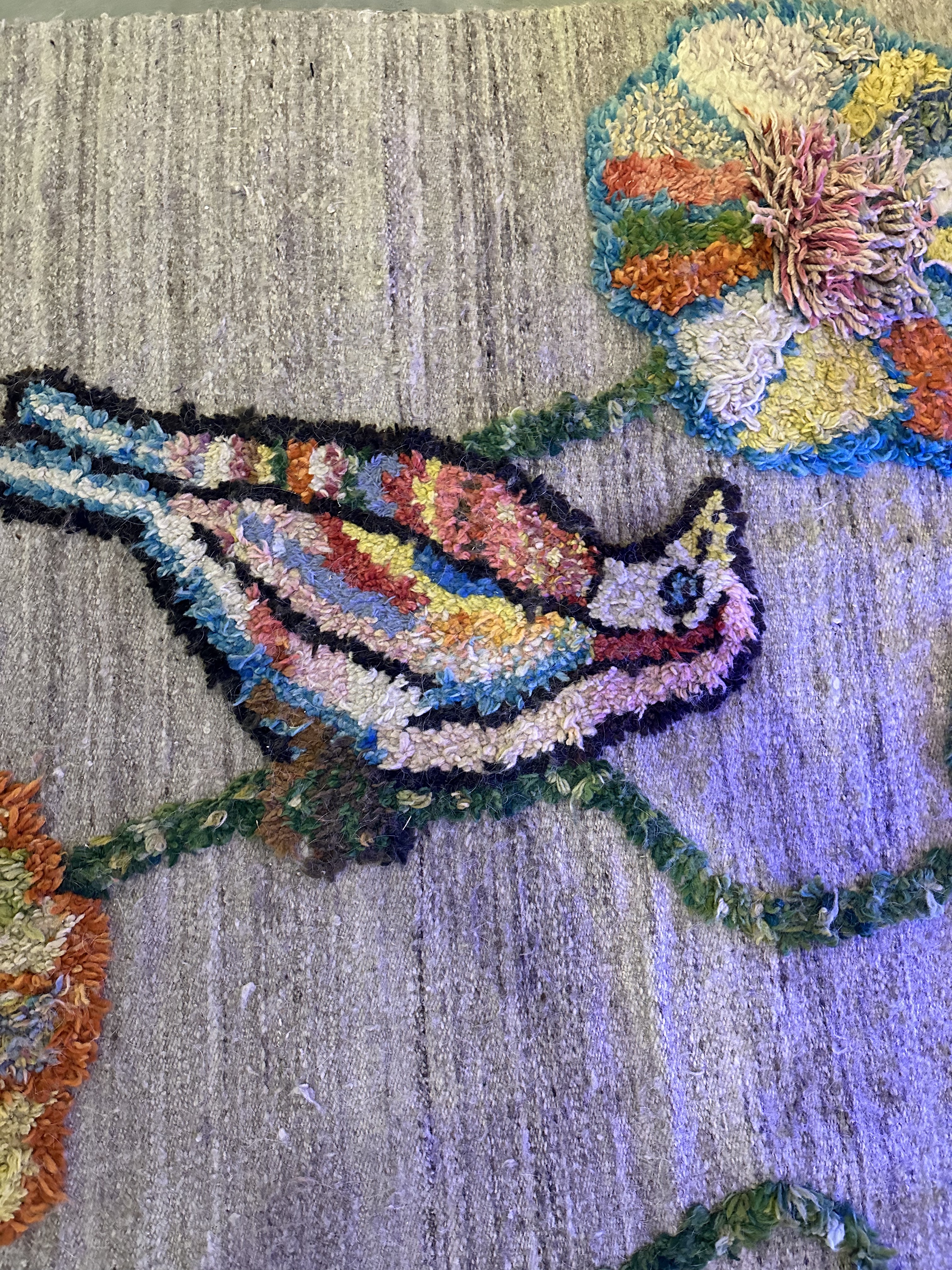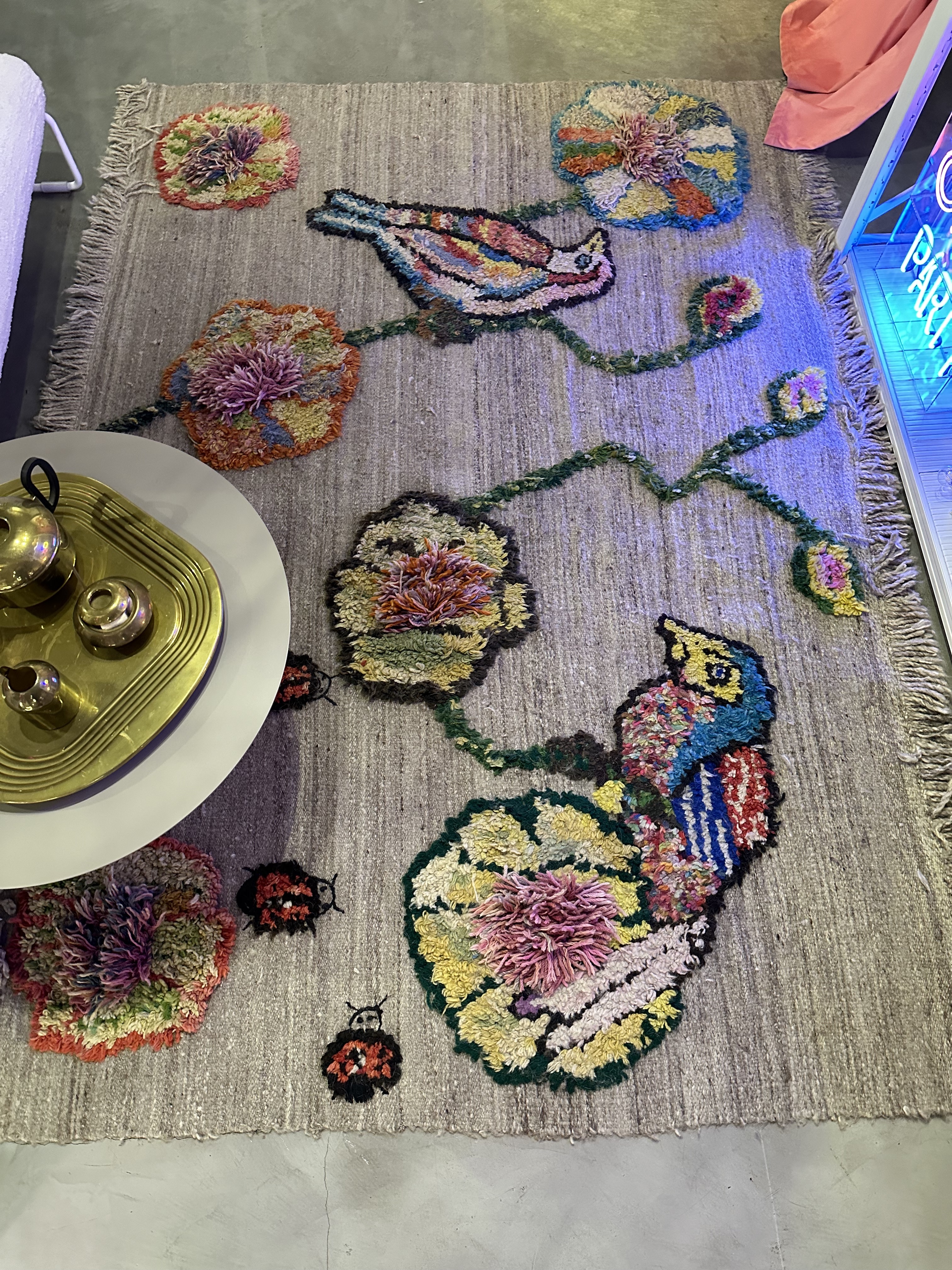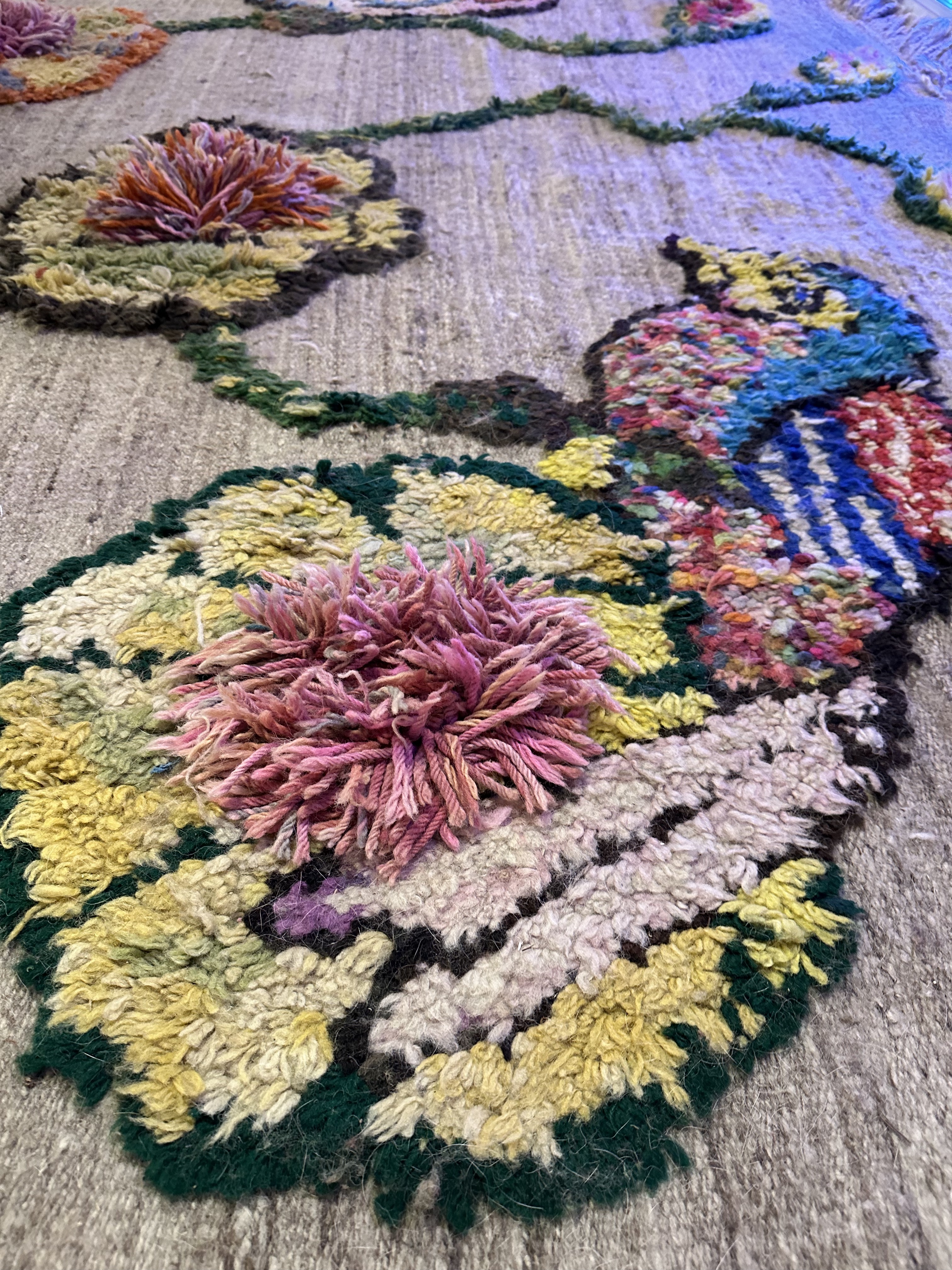 Χειροποίητο Χαλί με κεντήματα λουλουδιών και σπουργιτιων. Σε άριστη κατάσταση, εκθεσιακό κομμάτι διαθέσιμο στο κατάστημα της Αγίας Παρασκευής.