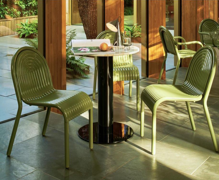 Η GROOVE Side Chair, αποτελεί μέρος της πρώτης συλλογής εξωτερικού χώρου της Tom Dixon. Με χαρακτηριστικές υπερυψωμένες γραμμές σε στυλ art deco, αυτή η καρέκλα είναι κατασκευασμένη από αλουμίνιο υψηλής ποιότητας με προηγμένες τεχνικές κατασκευής για εξαιρετική αντοχή και ανθεκτικότητα στη διάβρωση. Η συλλογή GROOVE, η οποία τελειοποιήθηκε μετά από μια δεκαετία έρευνας, περιλαμβάνει πολυχρηστικές καρέκλες, σκαμπό και μαξιλάρια εξωτερικού χώρου, επιτρέποντας την αποτελεσματική στοίβαξη και αποθήκευση.