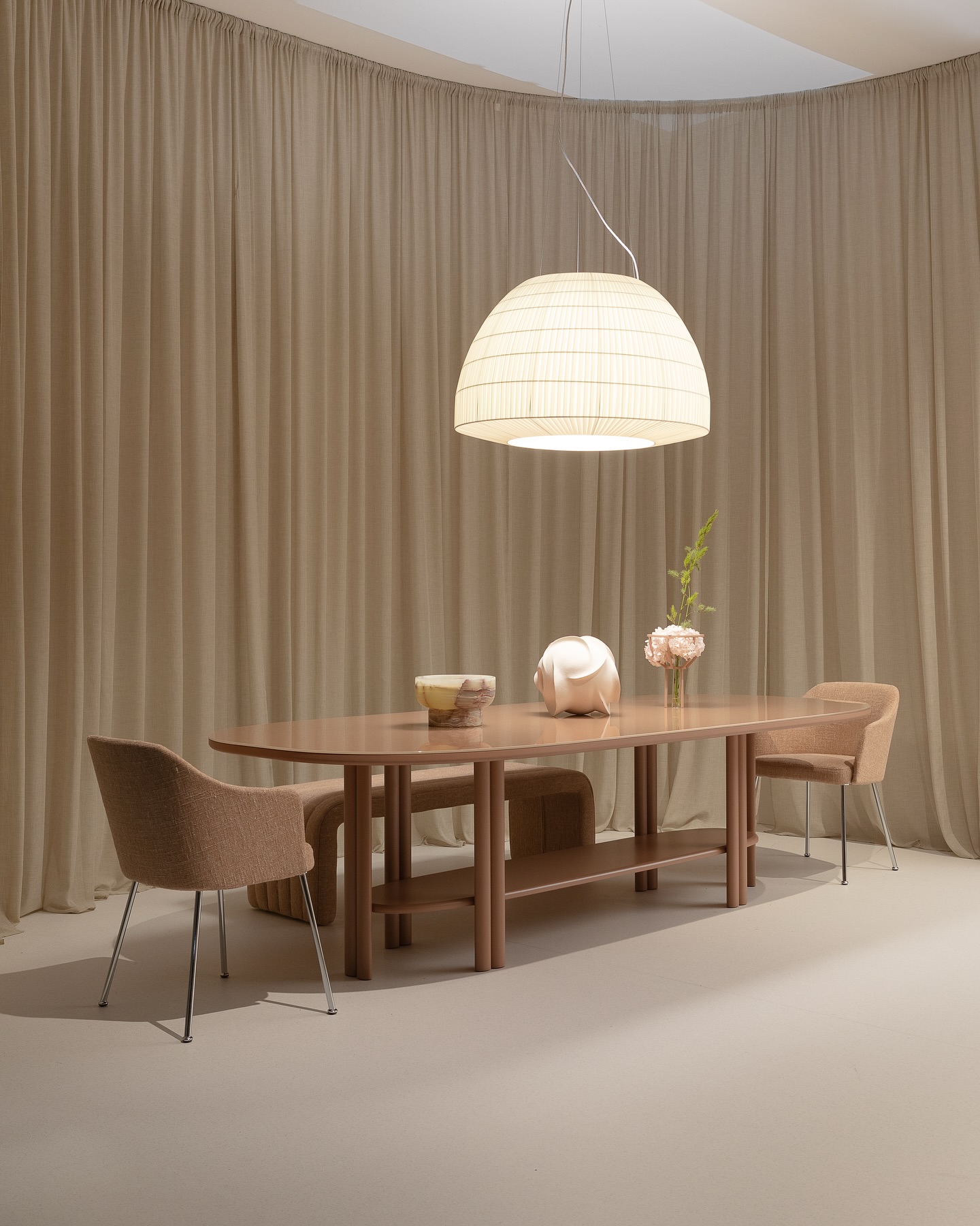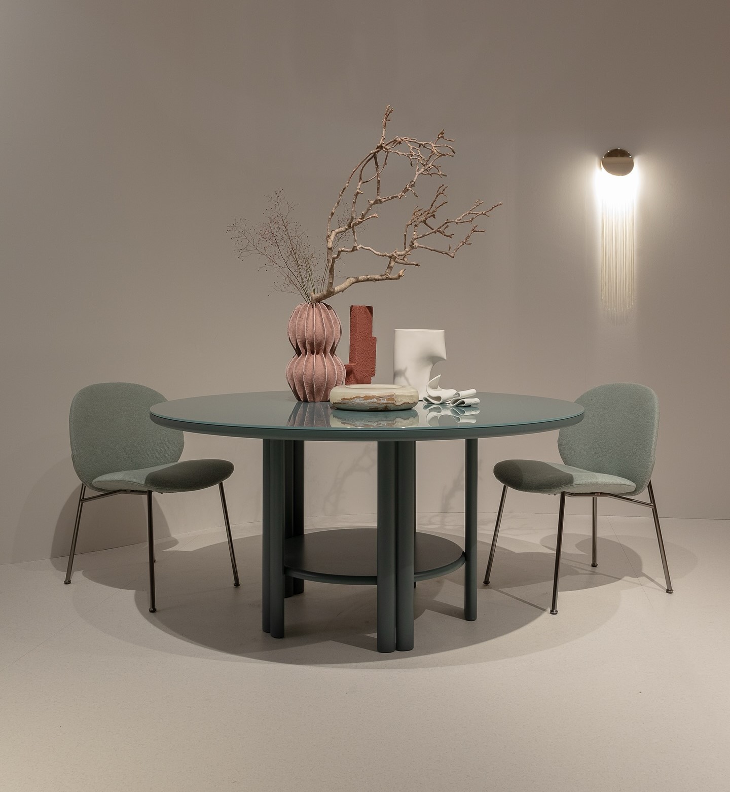 Σαν στήλες αρχαίου ναού, το τραπέζι Anam στέκεται με μια παρουσία που ξυπνά μνήμες μιας αρχαίας εποχής, ικανό να περιηγηθεί στους αιώνες χωρίς να χάσει το νόημά του. Το κομψό χέρι του Federico Peri εμπνέεται από τον αιώνιο κύκλο και τις κυκλικές κιονοστοιχίες και μέσα από μια προσεκτική εργασία αφαίρεσης, αποκαλύπτει την ίδια την ουσία του έργου: αγνά και διαχρονικά σχήματα.
