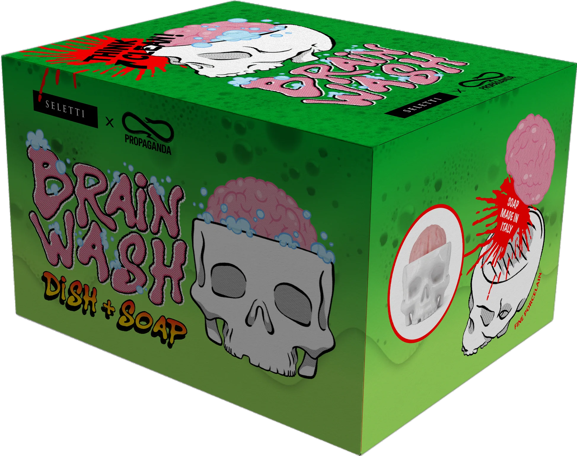 Σε συνεργασία με τους Propaganda, το Brain Wash ενσαρκώνει τη δημιουργικότητα και ευφυΐα που ανέκαθεν χαρακτήριζαν και την Seletti· ένα σχέδιο που γίνεται δράση, απελευθερώνοντάς σας από όλες τις βρώμικες σκέψεις, ξεπλένοντας επιρροές και κακούς τρόπους!