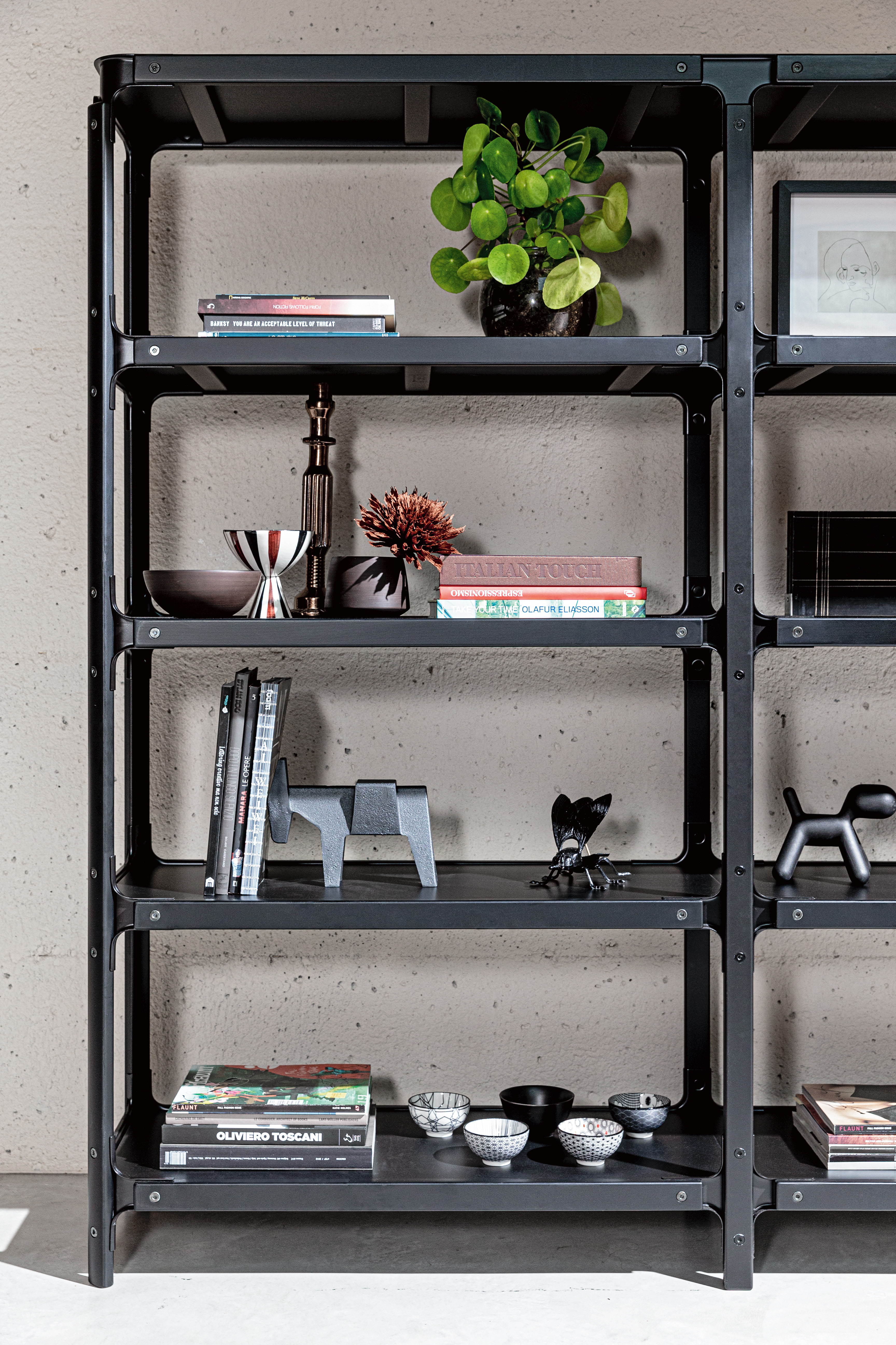 Το σύστημα ραφιών Steelwood προσφέρει μια λύση αποθήκευσης που προσαρμόζεται σε κάθε ανάγκη. Μια ευέλικτη βιβλιοθήκη που διατίθεται σε πολλά μεγέθη και μπορεί να τοποθετηθεί στον τοίχο ή στη μέση ενός δωματίου για να χωρίσει δύο χώρους.