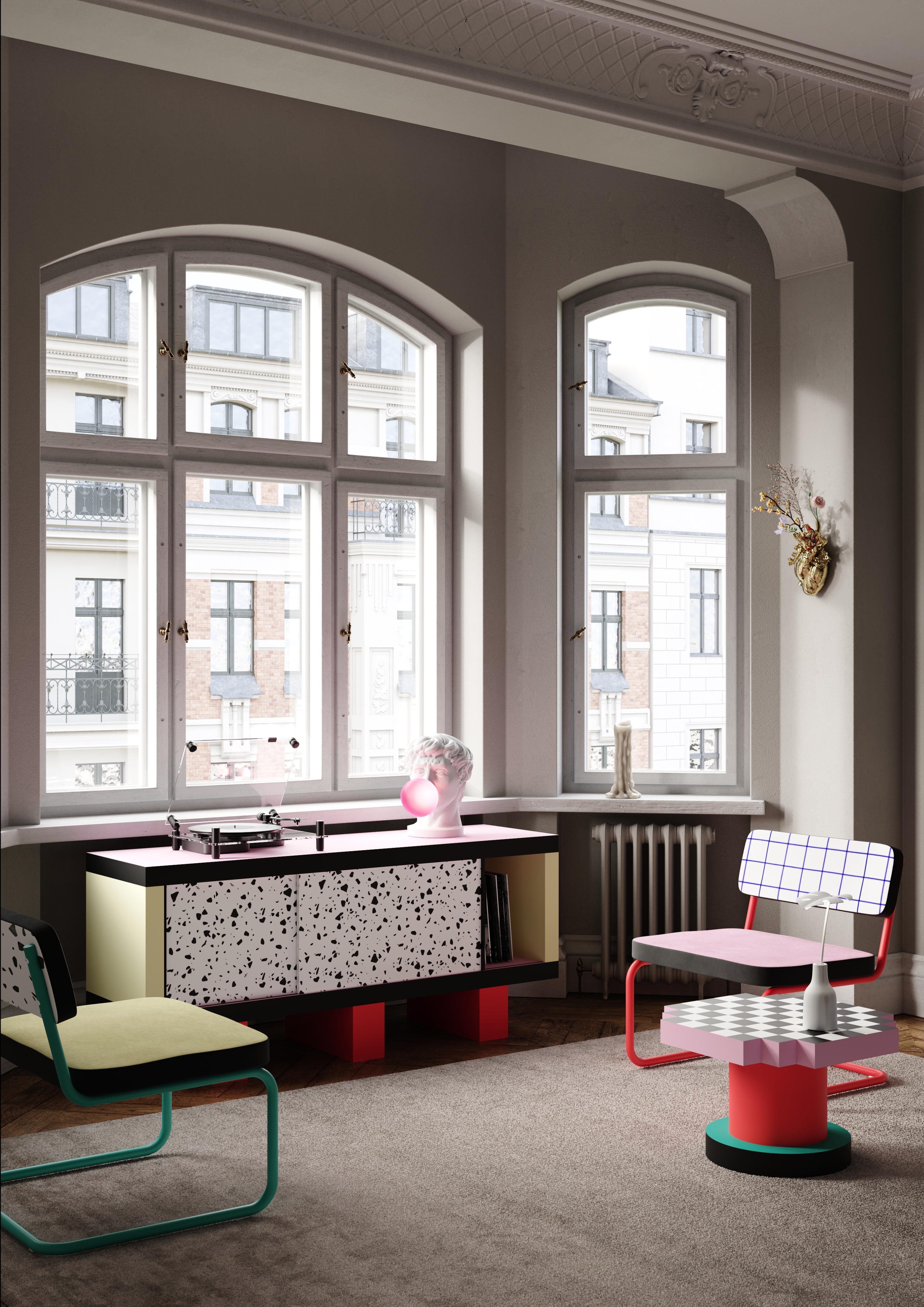 Η συλλογή Superfurniture αποτίει φόρο τιμής στο ριζοσπαστικό ιταλικό design των δεκαετιών του '60 και του '70, ερμηνευμένο εκ νέου μέσα από το σύγχρονο όραμα της Hello Again, μιας ανώνυμης συλλογικότητας σχεδιαστών και καλλιτεχνών.