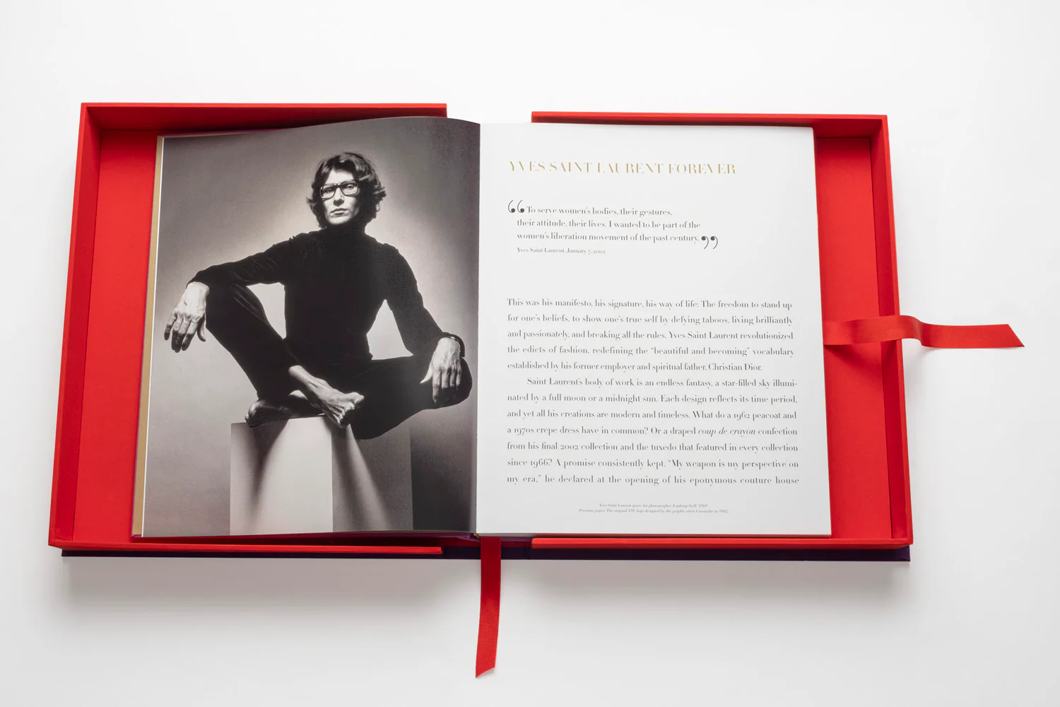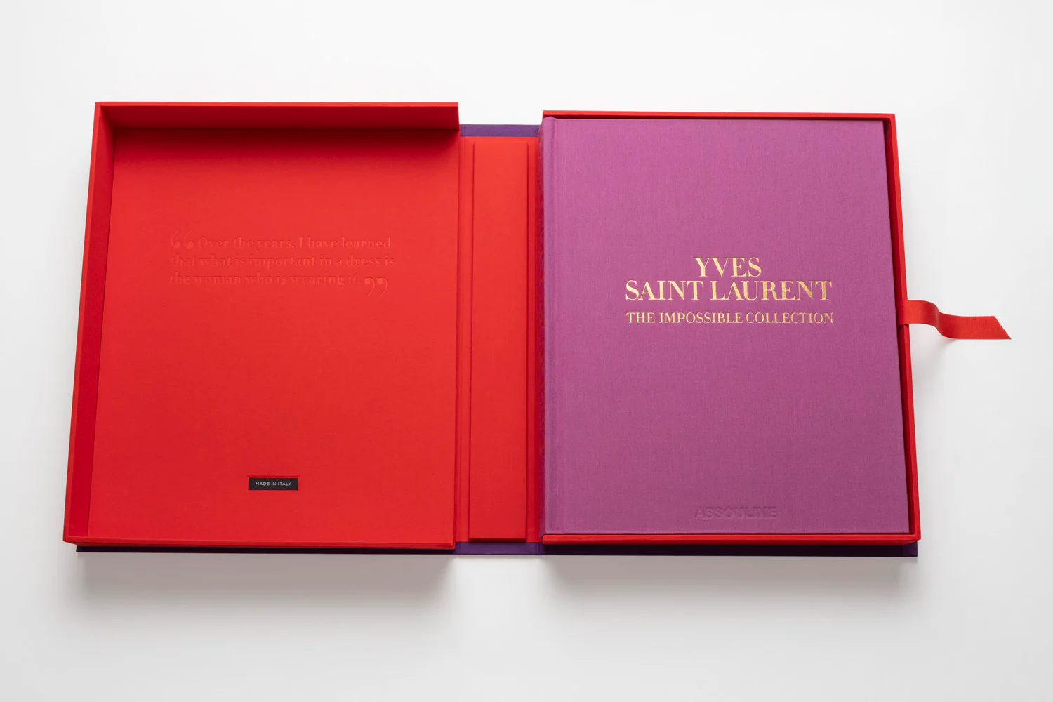 Αφού έκανε τη μεγάλη του επιτυχία βοηθώντας τον τιτάνα της γαλλικής υψηλής ραπτικής Christian Dior, ο Yves Saint Laurent ξεκίνησε τη δική του πορεία και μετέτρεψε την υψηλή ραπτική για μια νέα γενιά νέων, δυνατών, ανεξάρτητων γυναικών. Τα σχέδιά του άλλαξαν την πορεία της μόδας, εισάγοντας την έννοια των ready-to-wear σχεδιαστών για ένα ευρύτερο πελατολόγιο. Μπροστά από την εποχή του, δημιούργησε θηλυκές εκδοχές ανδρικών στυλ, όπως το ριγέ παντελόνι, το χακί σακάκι σαφάρι Saharienne και το σμόκιν Le Smoking, παρουσίασε σκανδαλώδεις ιδέες όπως οι διαφανείς μπλούζες και το τολμηρό άρωμα Opium, του οποίου το σκανδαλιστικό όνομα και οι πρώτες διαφημίσεις έγιναν αποδεκτές με σοκ. Ήταν επίσης ένας από τους πρώτους μόδιστρους που σχεδίασαν fast fashion, δημιουργώντας ένα σμόκιν για το γαλλικό κατάστημα μαζικής λιανικής πώλησης La Redoute το 1996. Με τον καταξιωμένο δημοσιογράφο μόδας και ειδικό στον Saint Laurent, Laurence Benaïm, η Assouline έχει επιμεληθεί τα 100 πιο εμβληματικά signature κομμάτια από το σαραντάχρονο έργο του Yves Saint Laurent, από τις πρώτες εμφανίσεις που παρουσιάστηκαν στην πασαρέλα στην ομώνυμη πρώτη του συλλογή τον Ιανουάριο του 1962 μετά την αποχώρησή του από τον Dior, μέχρι την τελευταία του παρουσίαση υψηλής ραπτικής μετά τη συνταξιοδότησή του το 2002. Η best-seller προσθήκη στην αποκλειστική συλλογή Ultimate Collection της Assouline με χειροποίητα κομμάτια, Yves Saint Laurent: The Impossible Collection, αναδεικνύει όλα τα κλασικά: το φόρεμα Mondrian, το μαύρο φόρεμα με λευκό γιακά και μανσέτες για την ταινία Belle de Jour, τη θρυλική συλλογή Ballets Russes, τους φόρους τιμής στους Picasso, Matisse και van Gogh, τα tailored παντελόνια και τα ριχτά ντραπέ φορέματα "coup de crayon", την πλούσια χρήση βελούδου, δαντέλας, φτερών, λεοπάρ print και λαμπερών κοσμημάτων, καθιστώντας αυτό το βιβλίο το απόλυτο βιβλίο για τους θαυμαστές της υψηλής ραπτικής και της ιστορίας του design.