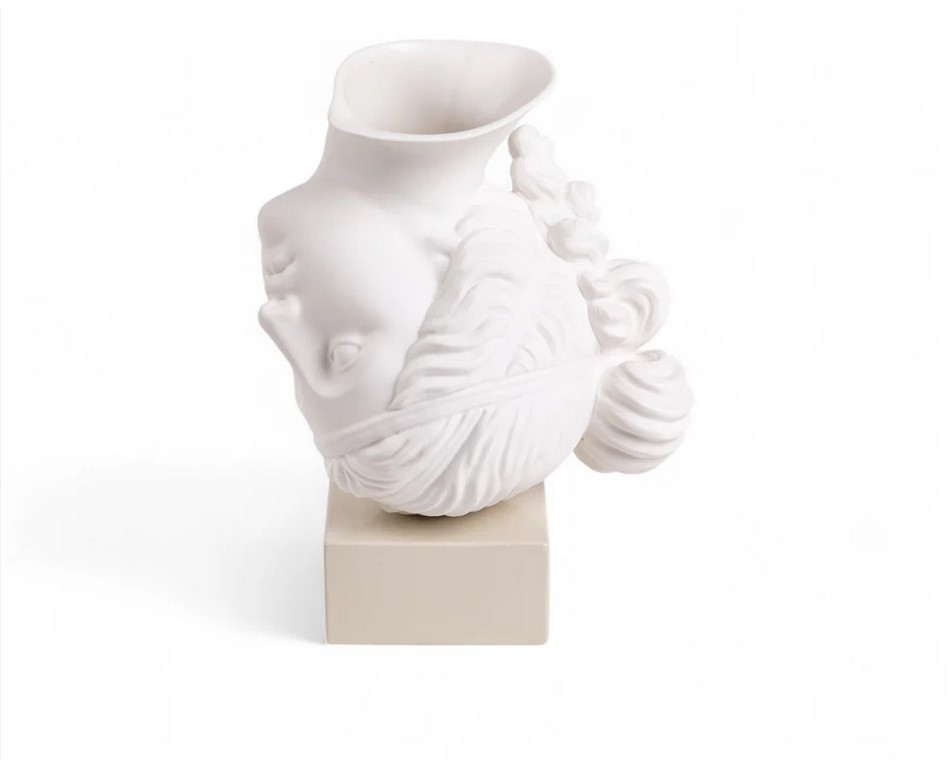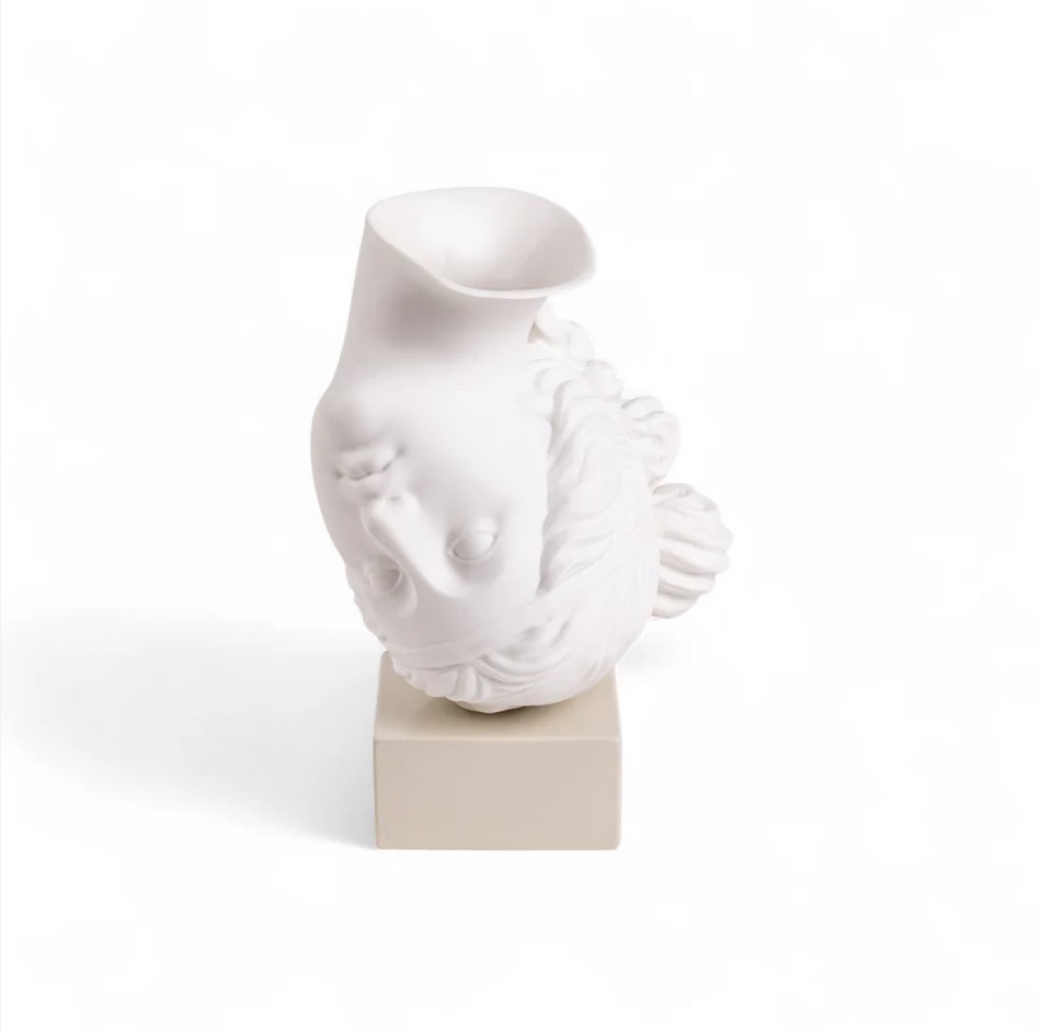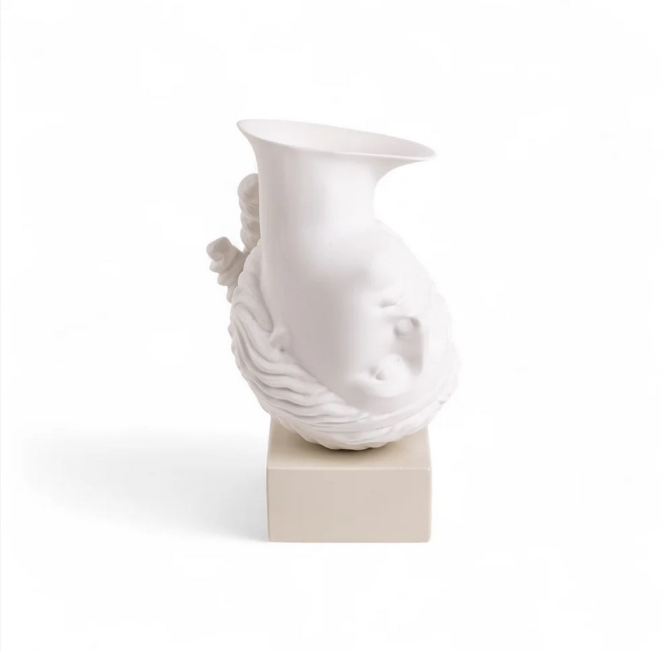 Το Amor Volat είναι ένα βάζο που φαίνεται να αψηφά τη βαρύτητα, ένα αναποδογυρισμένο κεφάλι που μετατρέπει ένα κλασικό γλυπτό σε σύμβολο ελαφρότητας. Εμπνευσμένο από εκείνη τη στιγμή που ο έρωτας μας κάνει να νιώθουμε σαν να αιωρούμαστε στον αέρα, στο έλεος ενός απαλότερου, φωτεινότερου, πιο μαγικού κόσμου. Το Amor Volat δεν είναι απλώς ένα βάζο, είναι ένας φόρος τιμής σε όσους ζουν με την καρδιά τους σε πτήση. Και τα λουλούδια; Είναι η μυστική γλώσσα των συναισθημάτων!