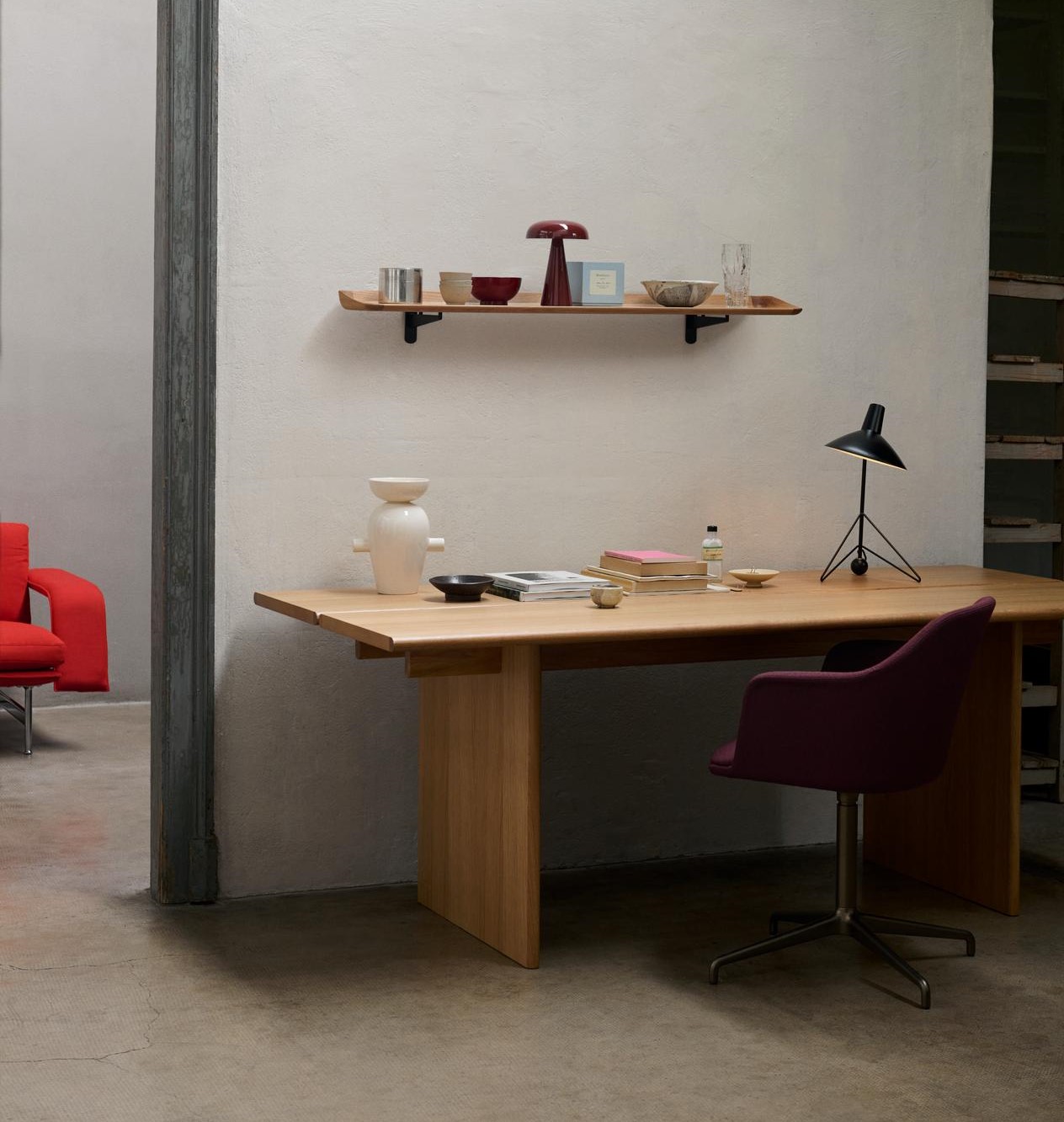 Χαρακτηριζόμενο από δύο μονές επιφάνειες που στηρίζονται πάνω σε φαρδιά ξύλινα πόδια, το τραπέζι φαγητού Ita αποτελεί ένα μάθημα κατασκευαστικού μινιμαλισμού. Υπερβαίνοντας τα όρια μεταξύ της σκανδιναβικής και της ιαπωνικής σχεδιαστικής φιλοσοφίας, το τραπέζι Ita εκφράζει μια απλή αλλά κομψή σχεδιαστική γλώσσα.