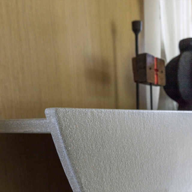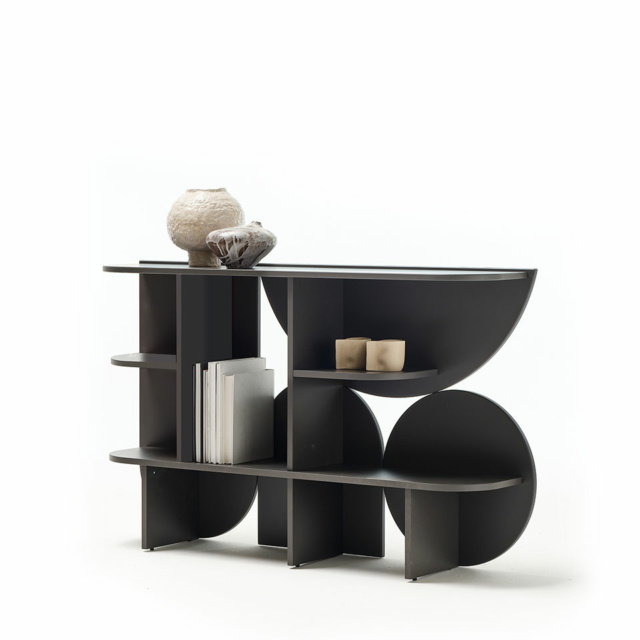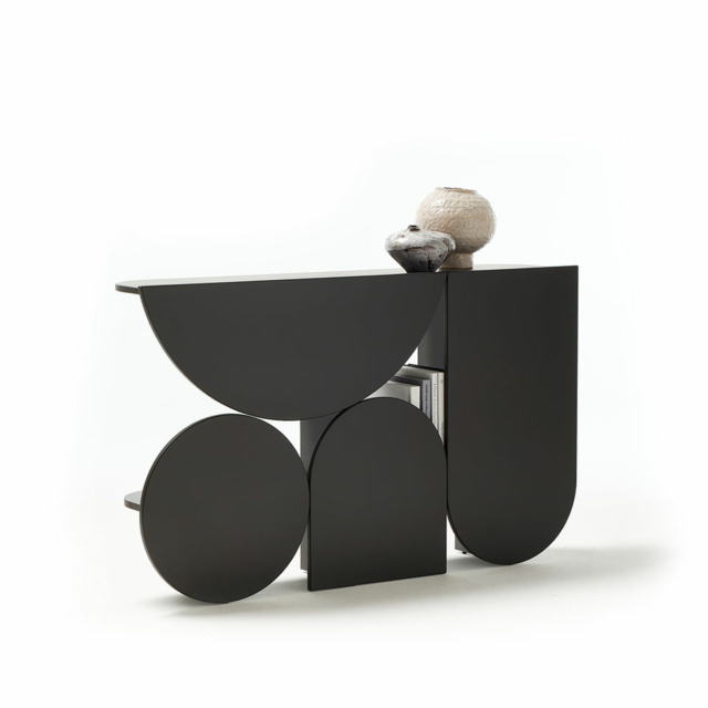 Η κονσόλα Shape χαρακτηρίζεται από ένα έντονο αρχιτεκτονικό και γλυπτικό design που εξισορροπεί μεταξύ κενού και στερεού. Ο σχεδιασμός της αντλεί έμπνευση από τα παιδικά παιχνίδια με χαρτί, όπου το δίπλωμα και το κόψιμο δημιουργούν γεωμετρικά μοτίβα και αλληλουχίες. Είναι ιδανική για την είσοδο του σπιτιού, διαδρόμους ή ως διαχωριστικό στοιχείο.