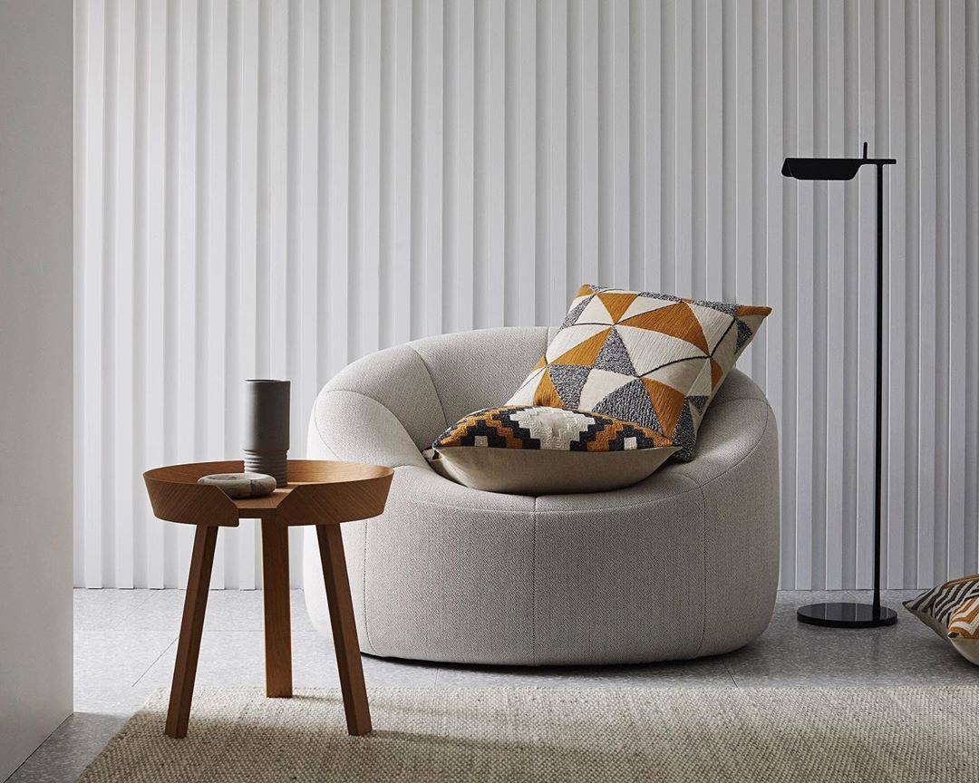 Η πολυθρόνα της συλλογής διατίθεται με σταθερή ή περιστρεφόμενη βάση, σε μεγάλη ποικιλία υφασμάτων και δερμάτων.