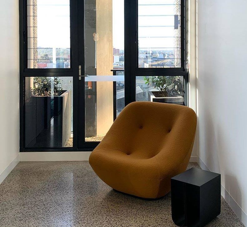 Η πολυθρόνα της συλλογής, διατίθεται κατόπιν παραγγελίας με σταθερή ή περιστρεφόμενη βάση, σε ποικιλία υφασμάτων.