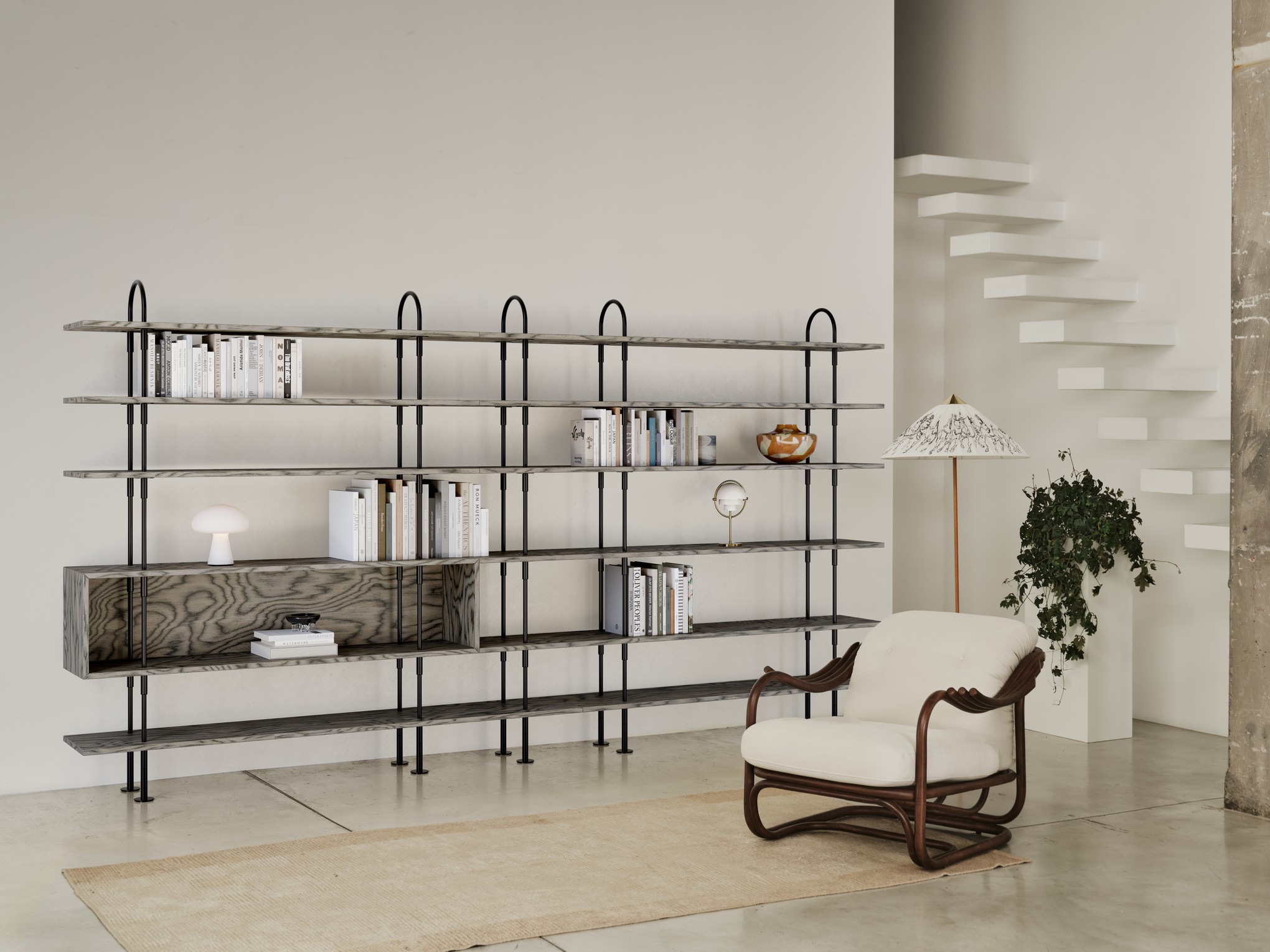 Σχεδιασμένο για την Gubi από το στούντιο Toko Among Friends της Linda Korndal, το σύστημα ραφιών Keen συνδυάζει την αρχιτεκτονική αυστηρότητα με την εκφραστική προσωπικότητα και την ήρεμη προσαρμοστικότητα. Σχεδιασμένο να εξελίσσεται μαζί με τον χρήστη του, το Keen επεκτείνεται τόσο κάθετα όσο και πλευρικά μέσω ενός διαισθητικού συστήματος ράβδων και στηριγμάτων που διατηρεί τη σύνθεση οπτικά ολοκληρωμένη σε κάθε στάδιο.