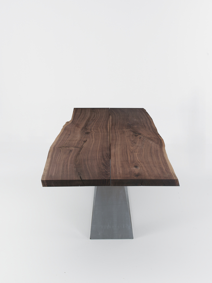 Το καπάκι απο φυσικό μασίφ ξύλο πάχους 5cm παντρεύεται απρμονικά με την σιδερένια βάση. Η επιφάνεια του τραπεζιού δέν δέχεται καμία χημική επεξεργασία, ούτε βάφεται με λούστρα, αντ'αυτού, θωρακίζεται με φυσικά έλαια και ειδικό κερί.