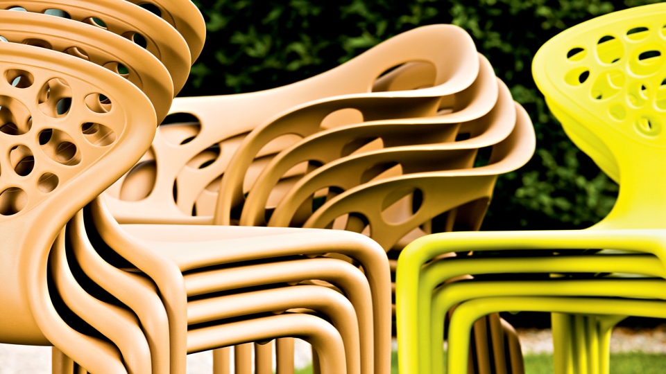 Μια καρέκλα με άκρως αισθαντικό σχεδιασμό, με καμπυλωτές γραμμές που εξουσιάζουν τον χώρο γύρω της. Στερεά και κενά, απουσίες που γίνονται παρουσίες όταν συναντούν το φως, τον αέρα, το ανθρώπινο σώμα. Οι τρύπες στην πλάτη του καθίσματος, σαν μια διάτρητη οθόνη, δημιουργούν μαγευτικά παιχνίδια φωτός και σκιάς, όπως το φως του ήλιου που πέφτει μέσα από τα φύλλα των δέντρων. Ευέλικτη, ελαφριά και πολύ ανθεκτική, η Supernatural εκτός απο μοναδικό σχεδιασμό διαθέτει και πολύ αναπαυτικό κάθισμα.