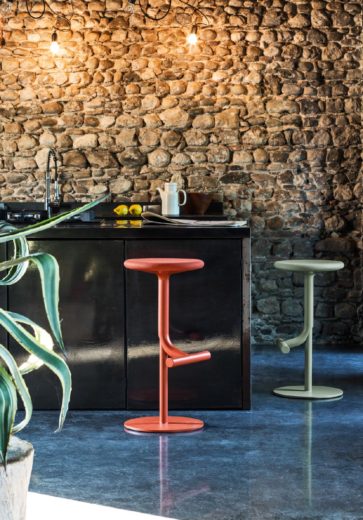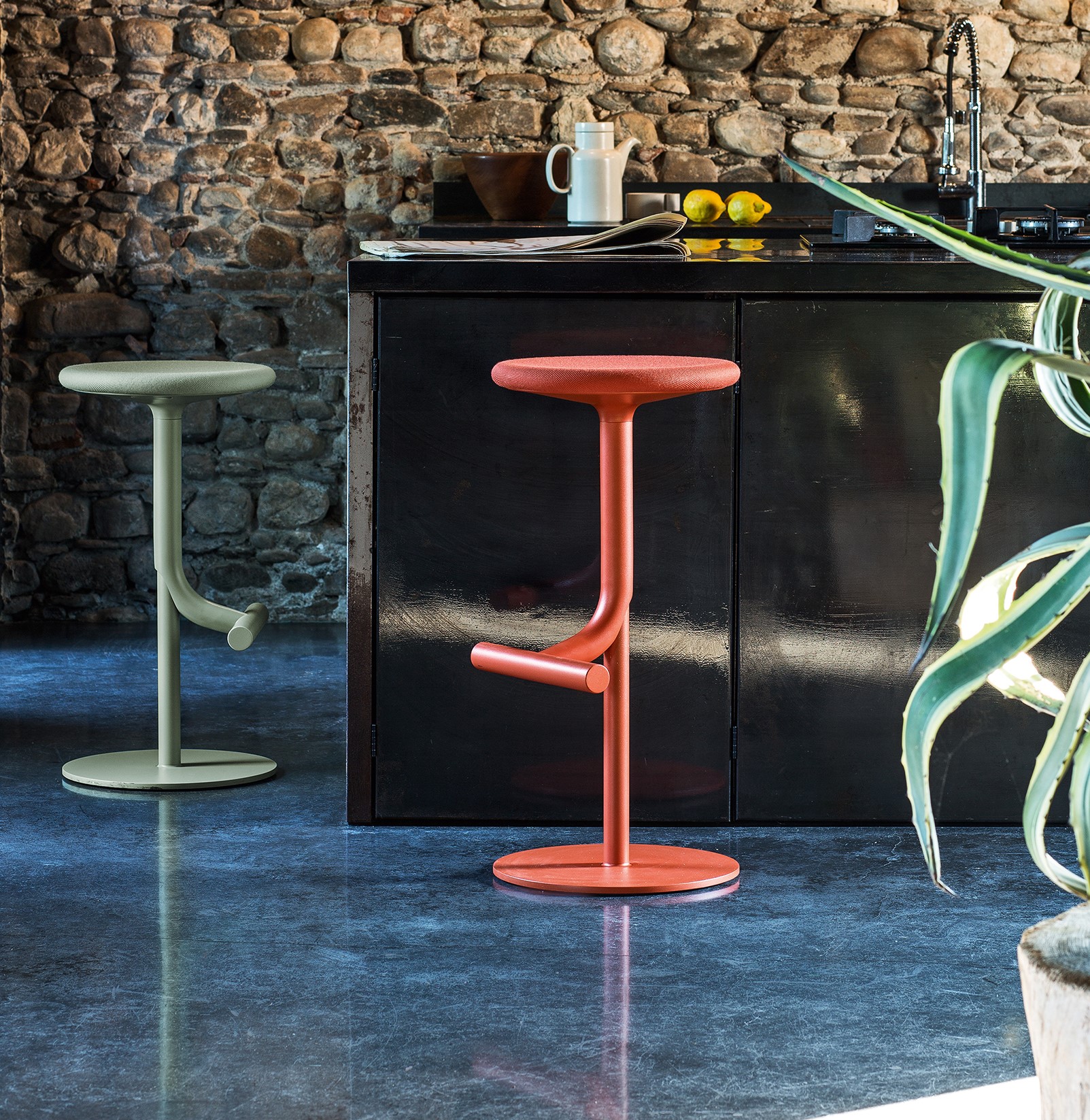 Το σκαμπό Tibu προσφέρει έναν εξαιρετικά καθαρό, λιτό, stylized design. Το κυκλικό κάθισμα και το υποπόδιο συνδυάζονται για να σχηματίσουν ένα ενιαίο σχήμα, που ξεπροβάλει από τη βάση και την κολόνα από κάτω. Διαθέτει μηχανισμό ρύθμισης ύψους και μια μεγάλη γκάμα χρωμάτων, για να ταιριάζει σε κάθε απαίτηση και περιβάλλον, στο σπίτι ή στον κόσμο των επαγγελματικών χώρων. Ολόκληρο το σκαμπό είναι σε ένα μόνο χρώμα, ο ατσάλινος σκελετός, το κάθισμα σε πολυουρεθάνη ή σε ύφασμα Kvadrat «Steelcut».