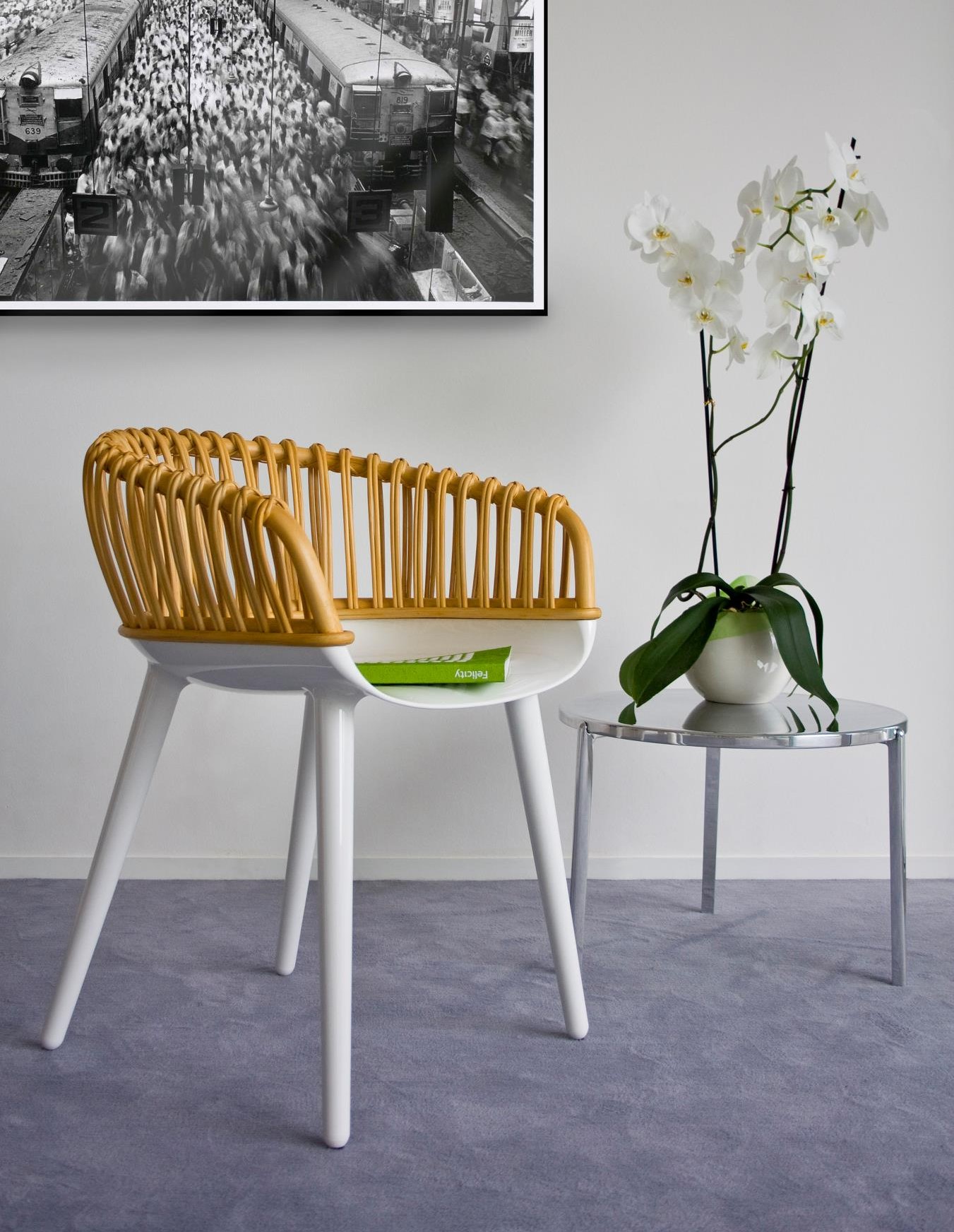 Το 1960, ο επιστήμονας, εφευρέτης και μουσικός Manfred Clynes επινόησε τον όρο cyborg που υποδηλώνει έναν οργανισμό ο οποίος συνδυάζει φυσικά και τεχνητά στοιχεία. Ο Marcel Wanders ερμηνεύει αυτή τη ένωση στον σχεδιασμό της καρέκλας Cyborg ο οποίος βασίζεται σε ένα βιομηχανικό μέρος, την πολύ απλή αλλά εξαιρετικά ανθεκτική βάση από πολυκαρβονικό, και σε ένα χειροποίητο μέρος, την πλάτη, η οποία μπορεί να είναι κατασκευασμένη από λυγαριά, μασίφ ξύλο ή να είναι επενδυμένη με εκλεκτά υφάσματα Kvadrad. Και είναι ακριβώς αυτή η πλάτη που υπαγορεύει την εκφραστική και αισθητική ποιότητα της καρέκλας.