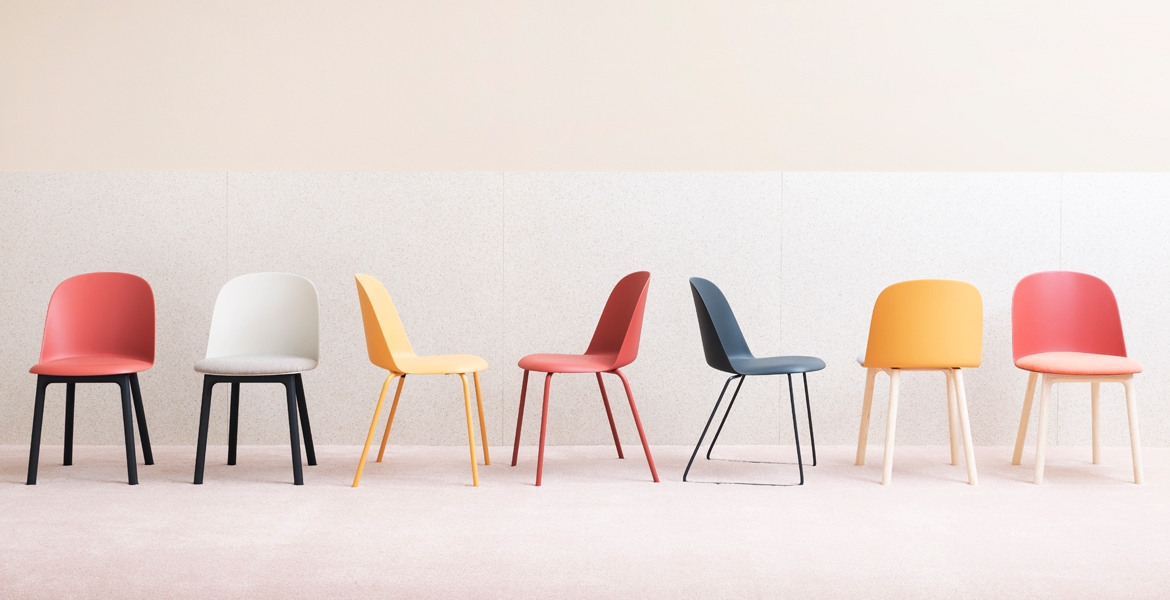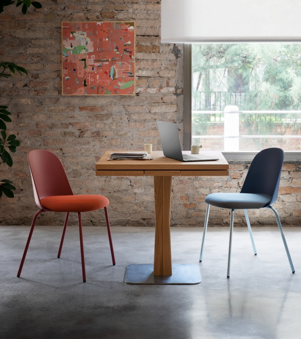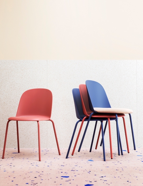 Διατίθεται κατόπιν παραγγελίας σε διαφορετικά χρώματα με κάθισμα επενδεδυμένο με ύφασμα ή χωρίς και διαφορετικές εκδόσεις βάσης ανάλογα με την χρήση, για τραπεζαρία ή γραφείο.