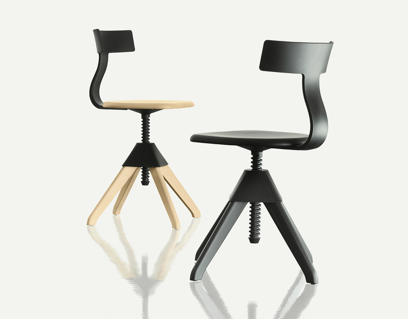 Διατίθεται κατόπιν παραγγελίας με κάθισμα και σκελετό σε μασίφ ξύλο οξιάς, φυσικό ή μαύρο, και πλάτη, σύνδεσμος και βίδα σε λευκό, μαύρο, κόκκινο, πορτοκαλί ή πράσινο πολυπροπυλένιο.