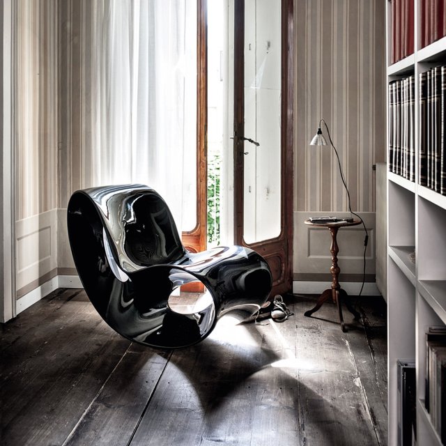 Η κουνιστή πολυθρόνα Voido με τον μοναδικό γλυπτικό σχεδιασμό του Ron Arad, μαγνητίζει τα βλέμματα σε όποιον χώρο σταθεί και προσφέρει απίστευτη άνεση σε όποιον καθίσει. Κατασκευασμένη από πολυαιθυλένιο είναι άκρως ανθεκτική και ιδανική τόσο για εξωτερικούς όσο και για εσωτερικούς χώρους.