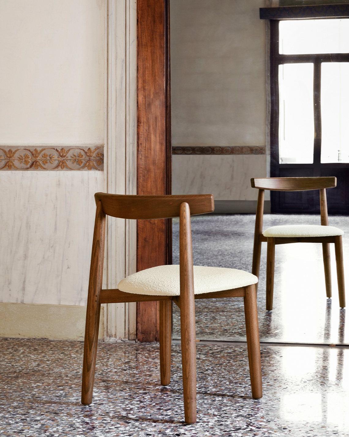 Η Claretta Bold είναι μεγάλη έντονη και ισχυρή στον χώρο. Η λεπτή μορφή της καρέκλας Claretta έχει πλέον γίνει πιο γλυπτική. Το κάθισμα της είναι ντυμένο με νέα υφάσματα, ιδανική επιλογή για κάθε τραπέζι και με δυνατότητα στοίβαξης.