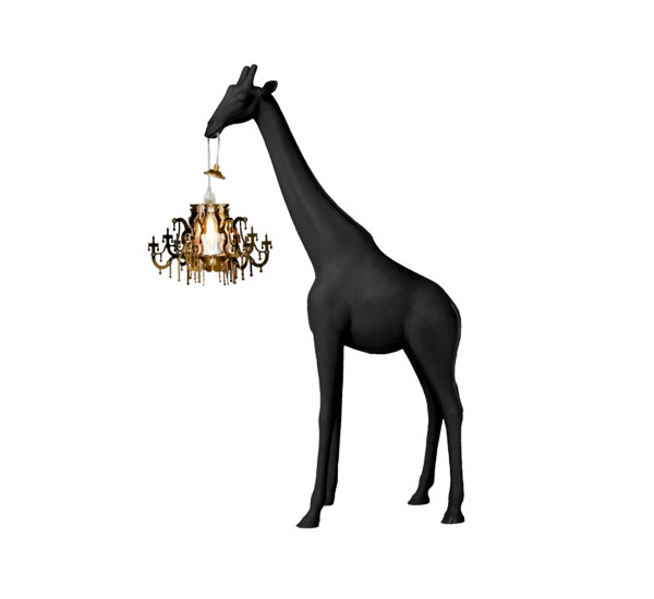 Η "Giraffe in love" προέκυψε με την συνεργασία του designer Marcantonio και της Qeeboo. Μια εντυπωσιακή καμηλοπάρδαλη σε δύο αποχρώσεις η οποία κρατά από το στόμα της ένα κλασικό Marie-Thérèse πολυέλαιο. Διαθέσιμο κατόπιν παραγγελίας.