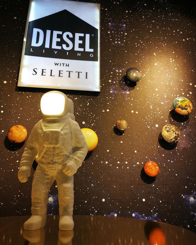 Ο διαστημάνθρωπος της σειράς Cosmic Dinner είναι η καινούρια πρόταση της εταιρείας Seletti σε συνεργασία με την Diesel. Ο συγκεκριμένος χρησιμοποιείται ως φωτιστικό καθώς η μάσκα του είναι φωτιζόμενη. Διαθέτει led επαναφορτιζόμενο.