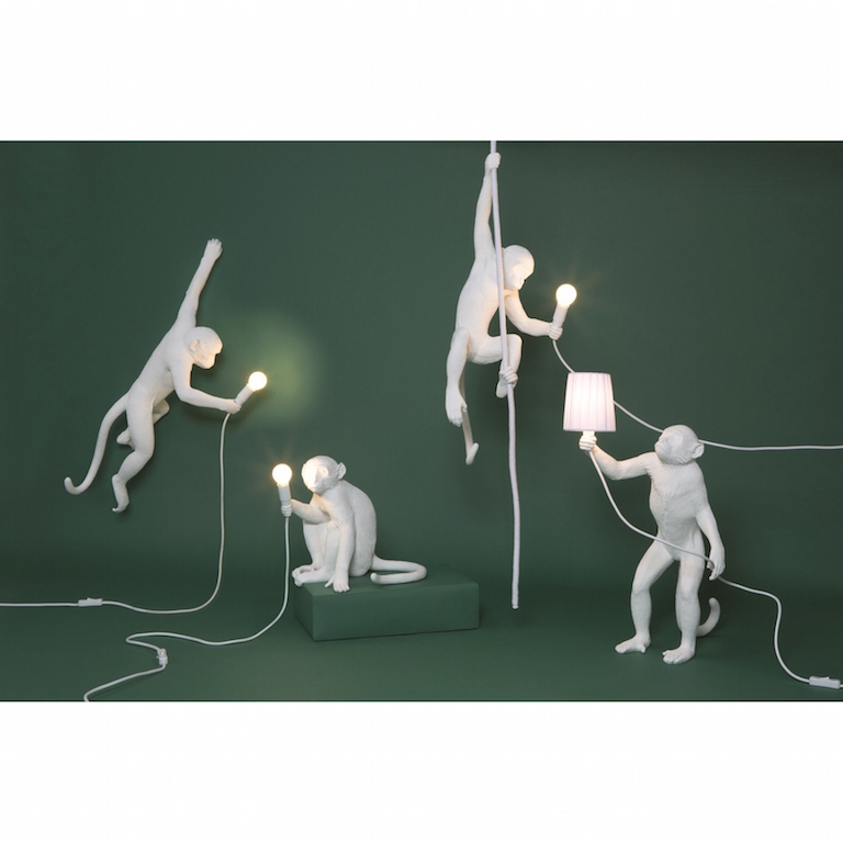 SELETTI MONKEY LAMP WHITE HANGING RIGHT INDOOR