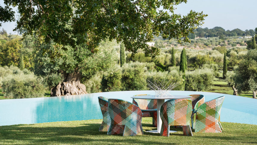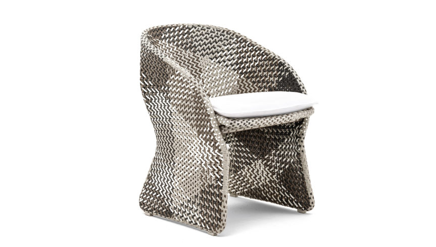 Καρέκλα εξωτερικού χώρου με χειροποίητη πλέξη από συνθετικές ίνες και σκελετό αλουμινίου. Τα μαξιλάρια είναι επενδυμένα με αφρό αποστράγγισης Dryfeel για εξωτερική χρήση, που στεγνώνει γρήγορα σε περίπτωση βροχής. Η γραμμή της καρέκλας Maat στενεύει ακριβώς κάτω από το κάθισμα και προσδίδει έτσι σταθερότητα στην κατασκευή. Το κάθισμα της είναι ευρύχωρο και άνετο προσφέροντας ξεκούραση στην πλάτη και τα χέρια ενώ χαλαρώνετε έξω. Το τριγωνικό μοτίβο ανοιχτής ύφανσης είναι χαρακτηριστικό του προϊόντος και χαρίζει μια ανάλαφρη εμφάνιση. Οι διαφορετικές λωρίδες τολμηρών χρωμάτων δίνουν στην παραδοσιακή ύφανση μια καινούργια και δυναμική αισθητική.