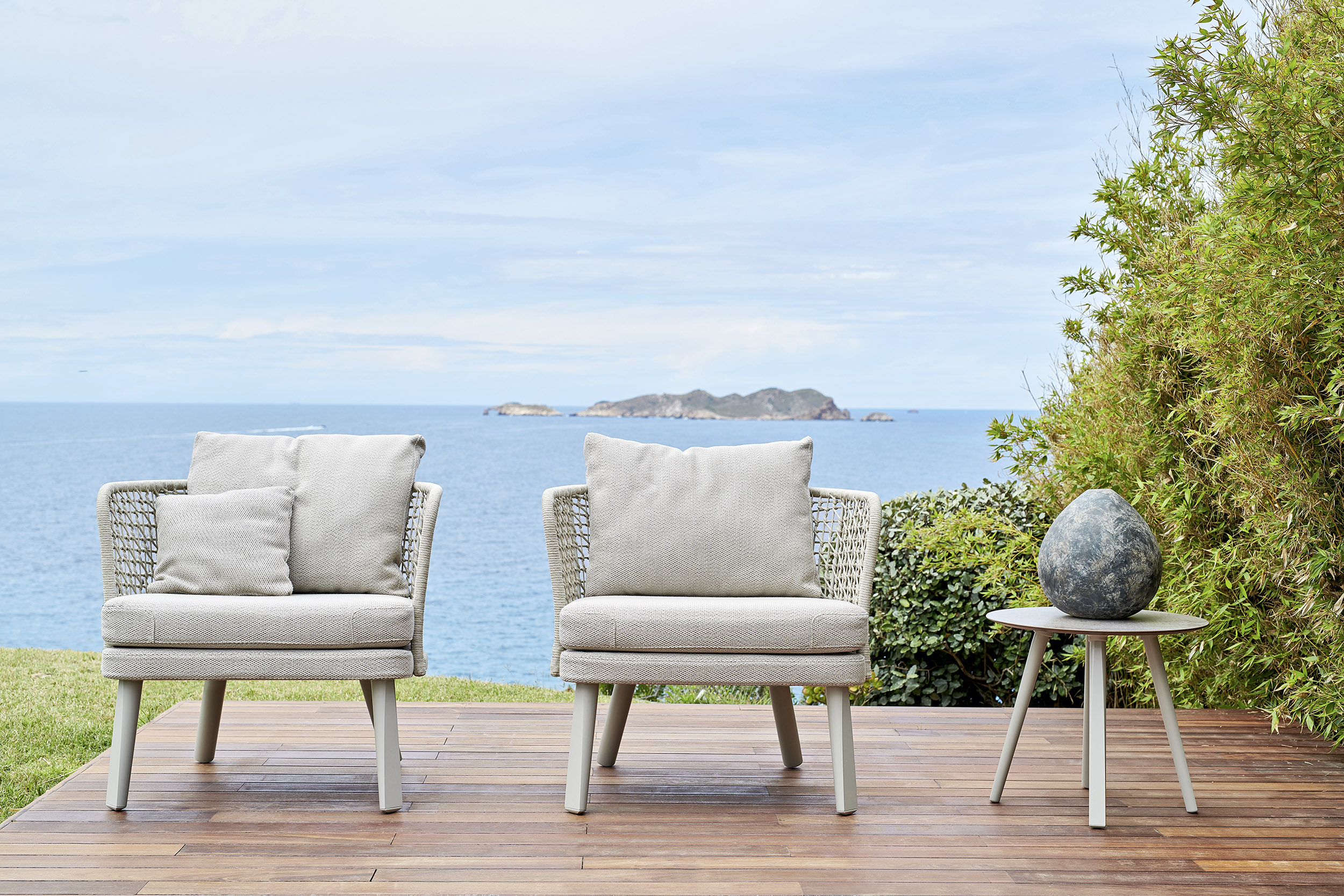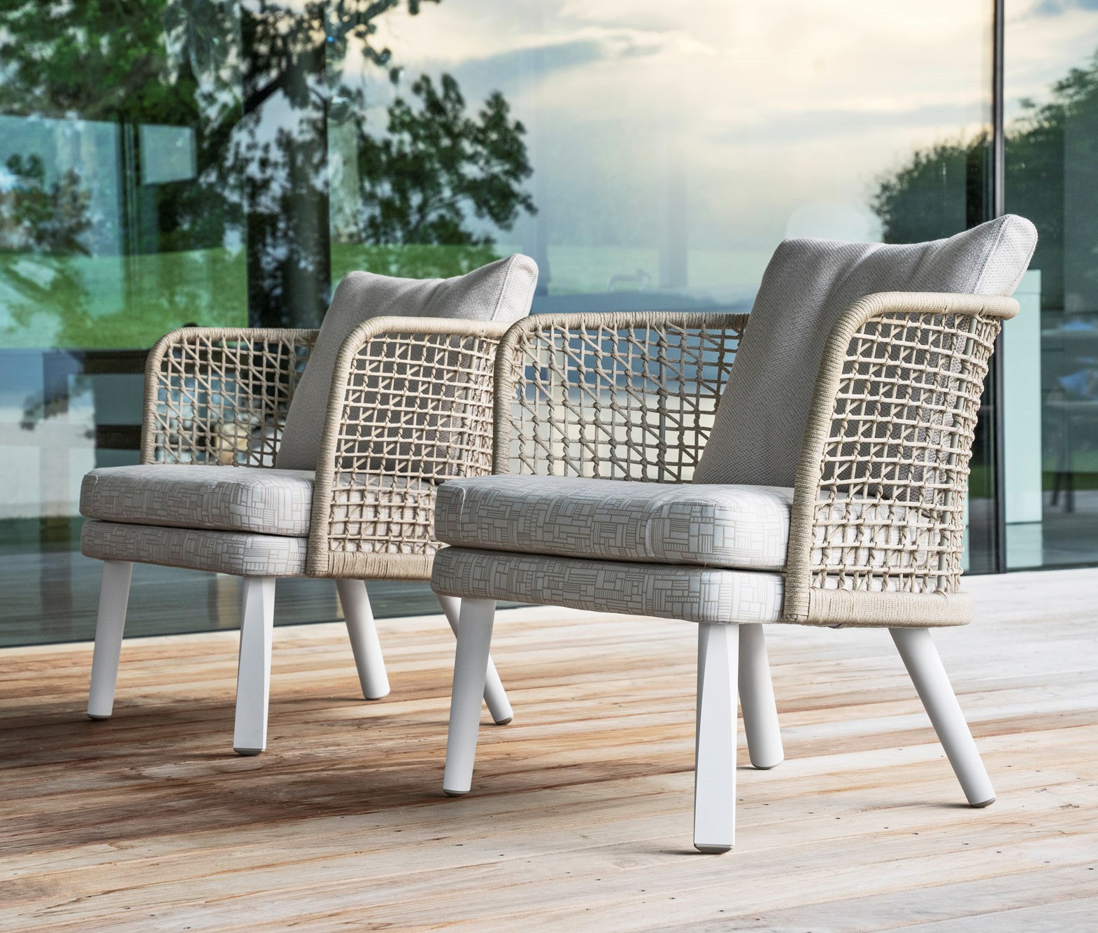 Η πολυθρόνα της συλλογής EMMA χαρακτηρίζεται από την ιδιαίτερη χειροποίητη πλέξη στη πλάτη, μια λεπτομέρεια που δίνει έμφαση στο σχήμα και το σχεδιασμό. Το κύριο χαρακτηριστικό της είναι το άνετο και ευρύχωρο κάθισμα που εγγυάται την απόλυτη χαλάρωση σε κάθε χώρο και εξωτερικό περιβάλλον: κήπους, μπαλκόνια, βεράντες, αίθρια, πισίνες.