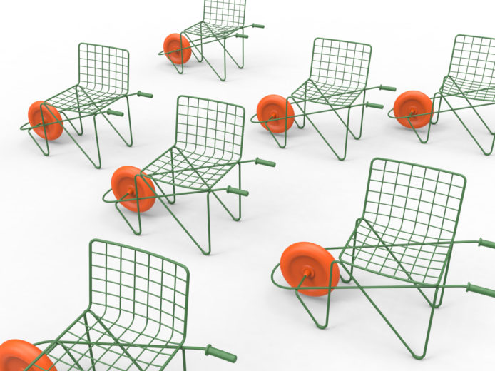 Η Trotter είναι μια διασκεδαστική και λειτουργική κινητή καρέκλα για παιδιά, κατασκευασμένη από ατσάλινη ράβδο και έναν περιστρεφόμενο πορτοκαλί τροχό από πολυπροπυλένιο. Η δομή του μιμείται το σχήμα ενός καροτσιού και ο εμφανής τροχός αποτελεί μια πρόσκληση για τα παιδιά να είναι δραστήρια, στην πραγματικότητα διευκολύνει τη μετακίνηση της καρέκλας στο καλύτερο σημείο, ξανά και ξανά.