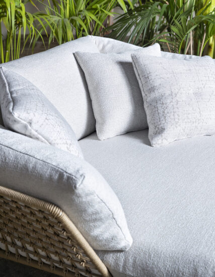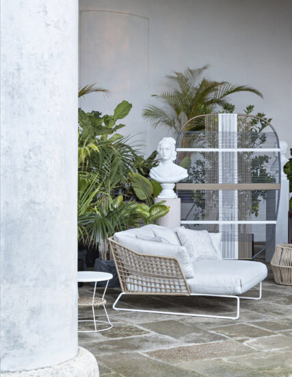 Το New York Sofa Soleil είναι προϊόν προσεκτικής έρευνας σε υλικά και την επιθυμία να διατηρηθεί ο μοναδικός πρωτότυπος σχεδιασμός. Τα πλεκτά ναυτικά κορδόνια διαφορετικών χρωμάτων καλύπτουν απαλά τη βαμμένη μεταλλική ράβδο. Το εργονομικό μαξιλάρι καλύπτεται από ένα μη απορροφητικό τεχνικό ύφασμα και εγγυάται αντοχή στην τριβή και στον ήλιο. Διατίθεται σε διάφορα χρώματα. Η συλλογή περιλαμβάνει καναπέ, πολυθρόνα, πουφ, καρέκλα με ή χωρίς μπράτσα, υποπόδιο και lounge.