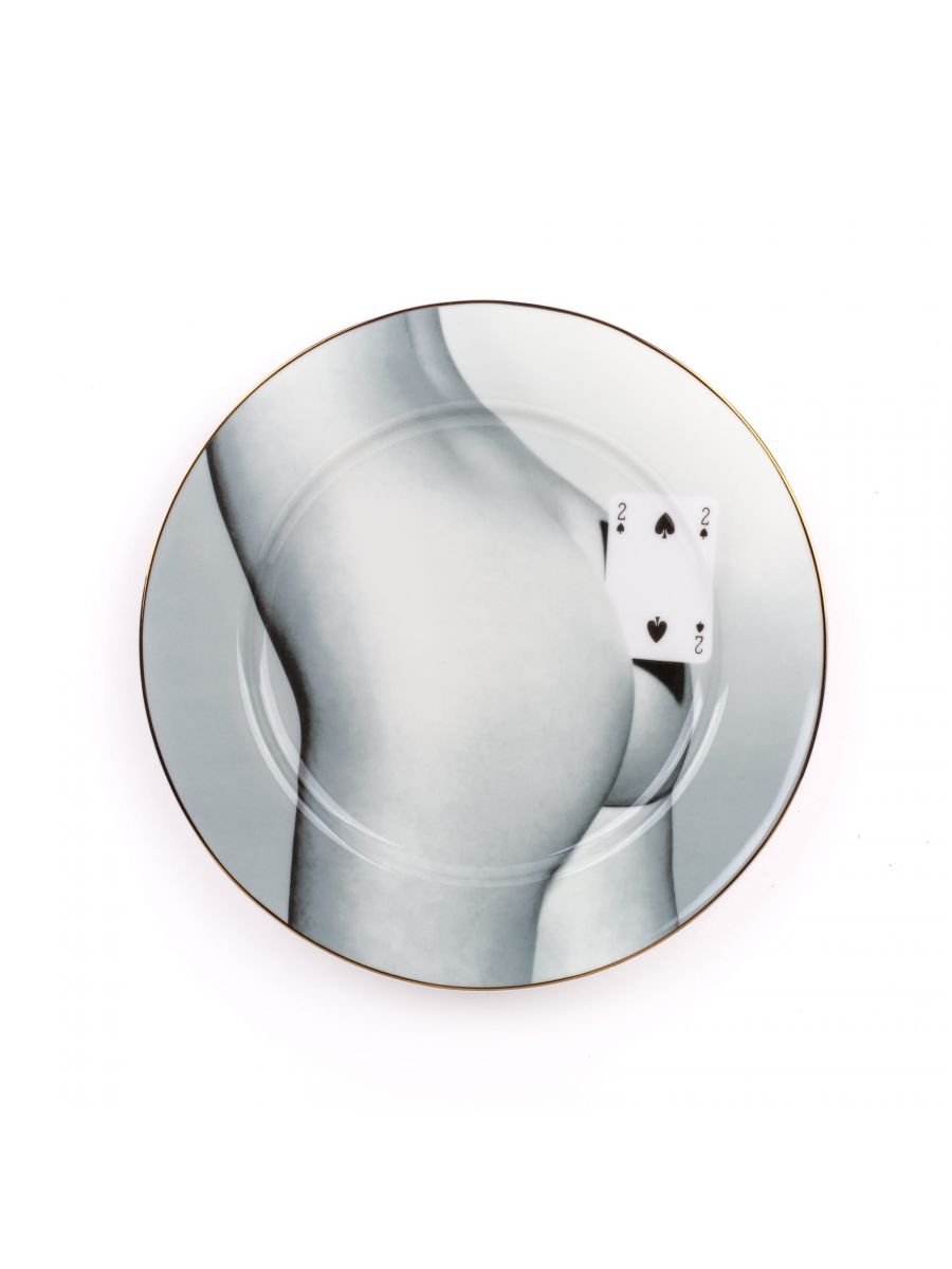 Seletti Toiletpaper Porcelain Plate Two of Spades Gold Border