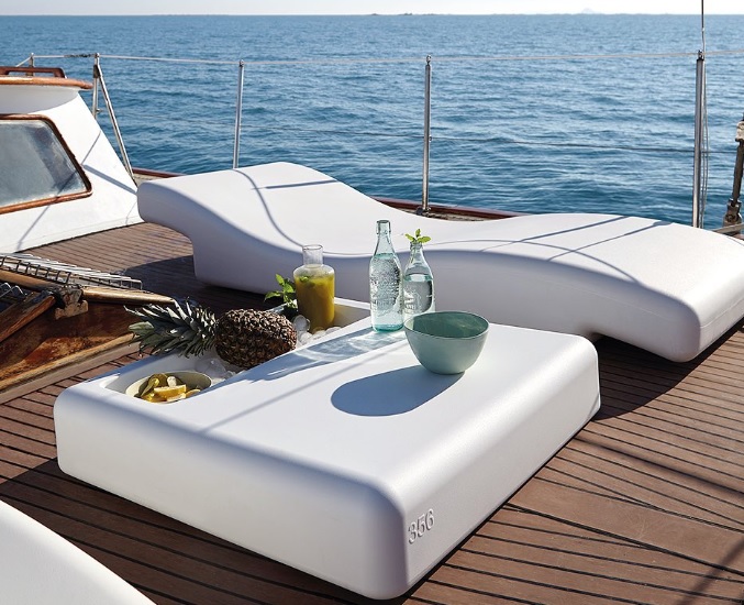 Το Side Table 365 είναι ένα βοηθητικό τραπεζάκι που πλαισιώνει την chaiselongue της ομώνυμης συλλογής, με τον ίδιο αεροδυναμικό σχεδιασμό. Μπορεί να χρησιμοποιηθεί επίσης ως κάθισμα ή υποπόδιο. Η εσοχή που διαθέτει, είναι μια έξυπνη λεπτομέρεια που προσφέρει πολλές χρήσεις, μπορούμε να βάλουμε σνάκ και ποτά ή να το χρησιμοποιήσουμε ως κάδο πάγου για να διατηρήσουμε τα ποτά δροσερά ή ακόμα και να φυτέψουμε φυτά!