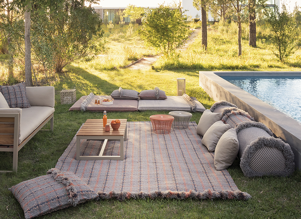 Η συλλογή Garden Layers, σχεδιασμένη από την Patricia Urquiola, είναι εμπνευσμένη από την αρχιτεκτονική και τον πολιτισμό των Mughal, περιλαμβάνει μια μεγάλη ποικιλία από χαλιά, στρώματα, τραπεζάκια, ανάκλινδρα, rolls και μαξιλάρια. Τα καινοτόμα υφάσματα και τα υλικά της έχουν σχεδιαστεί ειδικά για εξωτερική χρήση, διατηρώντας παράλληλα την άνεση που χαρακτηρίζει τους εσωτερικούς χώρους. Μια απίθανη συλλογή για mix n' match που δίνει τη δυνατότητα αλλαγής του setup ανα πάσα στιγμή.