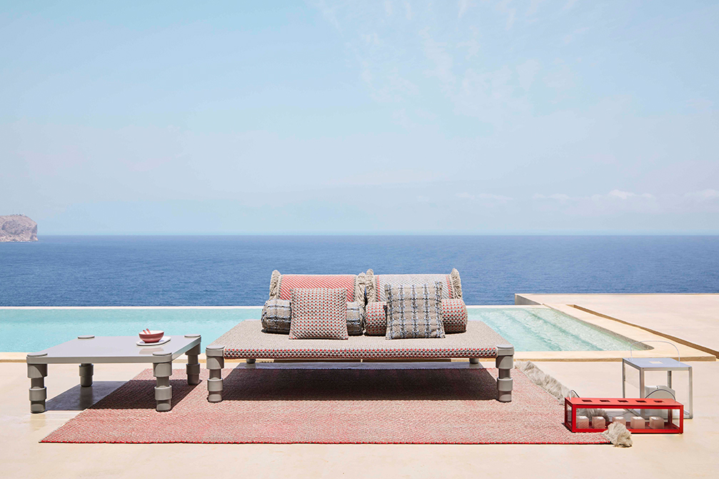 Η συλλογή Garden Layers, σχεδιασμένη από την Patricia Urquiola, είναι εμπνευσμένη από την αρχιτεκτονική και τον πολιτισμό των Mughal, περιλαμβάνει μια μεγάλη ποικιλία από χαλιά, στρώματα, τραπεζάκια, ανάκλινδρα, rolls και μαξιλάρια. Τα καινοτόμα υφάσματα και τα υλικά της έχουν σχεδιαστεί ειδικά για εξωτερική χρήση, διατηρώντας παράλληλα την άνεση που χαρακτηρίζει τους εσωτερικούς χώρους. Μια απίθανη συλλογή για mix n' match που δίνει τη δυνατότητα αλλαγής του setup ανα πάσα στιγμή.