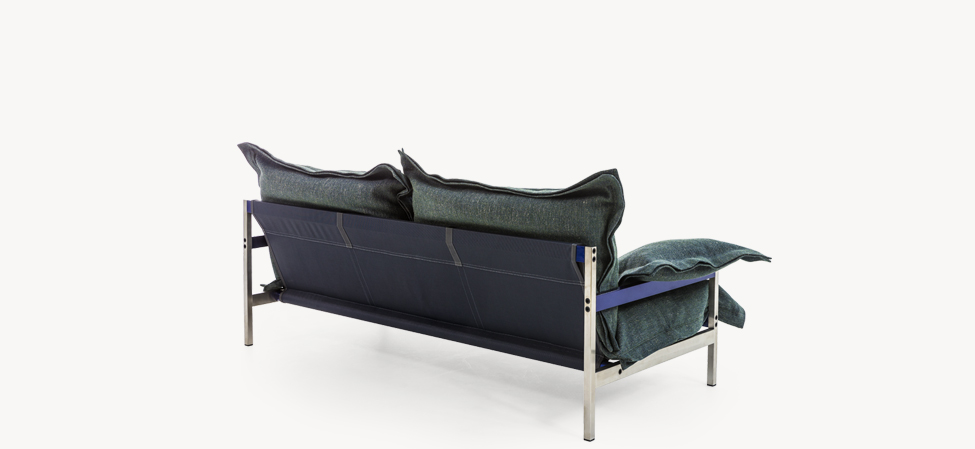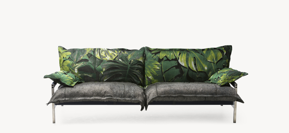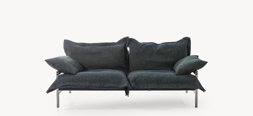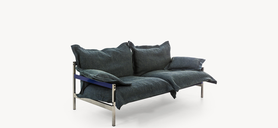 Συνδυάζοντας ένα σκελετό απο ανοξείδωτο ατσάλι με μια οργανική αντίθεση από μαξιλάρια σε φυσικές ίνες, οι αυστηρές γραμμές στυλ γραφείου συναντούν την βαθιά απαλότητα και προκύπτει ένας εξαιρετικά άνετος καναπές με μοναδικό στύλ.