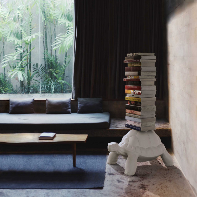 Ένας ακόμα μαγικός χαρακτήρας που φέρει την υπογραφή του Marcantonio: η Turtle Carry, μια συλλογή με βασικό στοιχείο μια χελώνα που το καβούκι της γίνεται η βάση για μια βιβλιοθήκη, ένα τραπεζάκι, ένα πουφ και ένα κασπό ή σαμπανιέρα. Για άλλη μια φορά ο Marcantonio εμπνέεται από τον φυσικό κόσμο και τις παράξενες μορφές του και τις μετατρέπει σε καλλιτεχνικά concepts ικανά να προσδώσουν ένα εκλεπτυσμένο, ειρωνικό design σε κάθε χώρο.