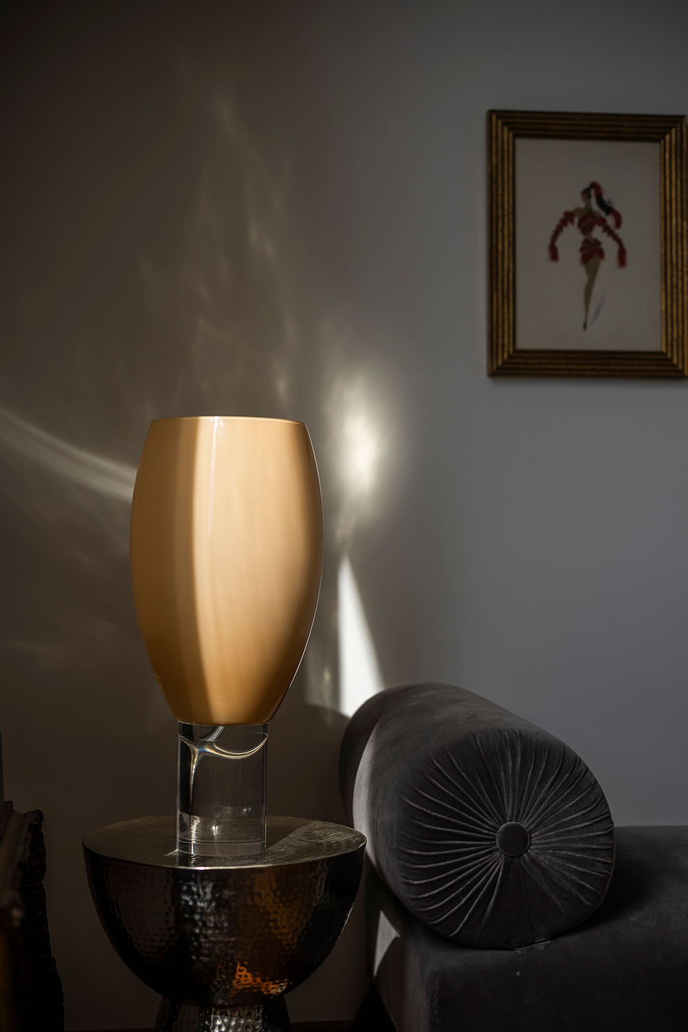 Στα επιτραπέζια φωτιστικά Buds πρωταγωνιστικό ρόλο έχει το φυσητό γυαλί που τους προσδίδει μία εκλεπτυσμένη εμφάνιση, σε συνδυασμό με μία διάφανη βάση που δίνει έμφαση στα καθαρά σχήματα της σειράς.