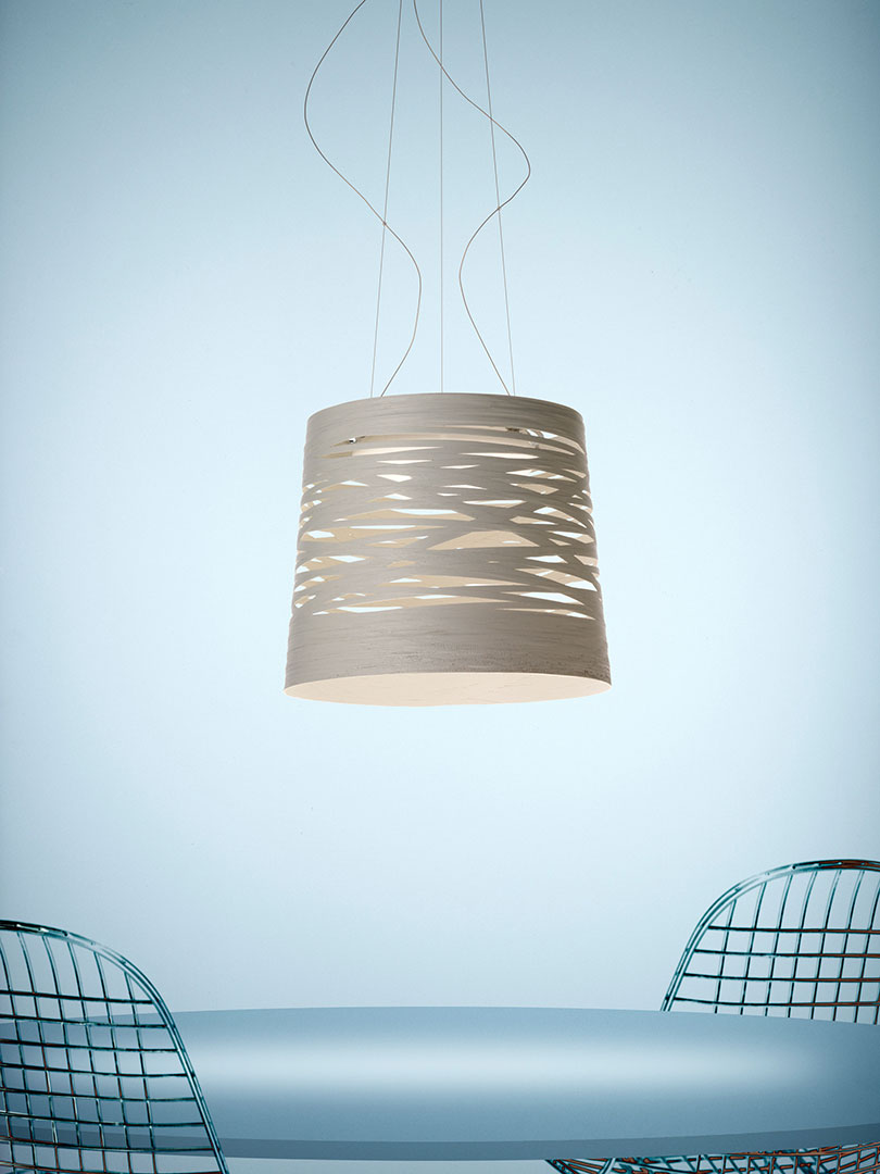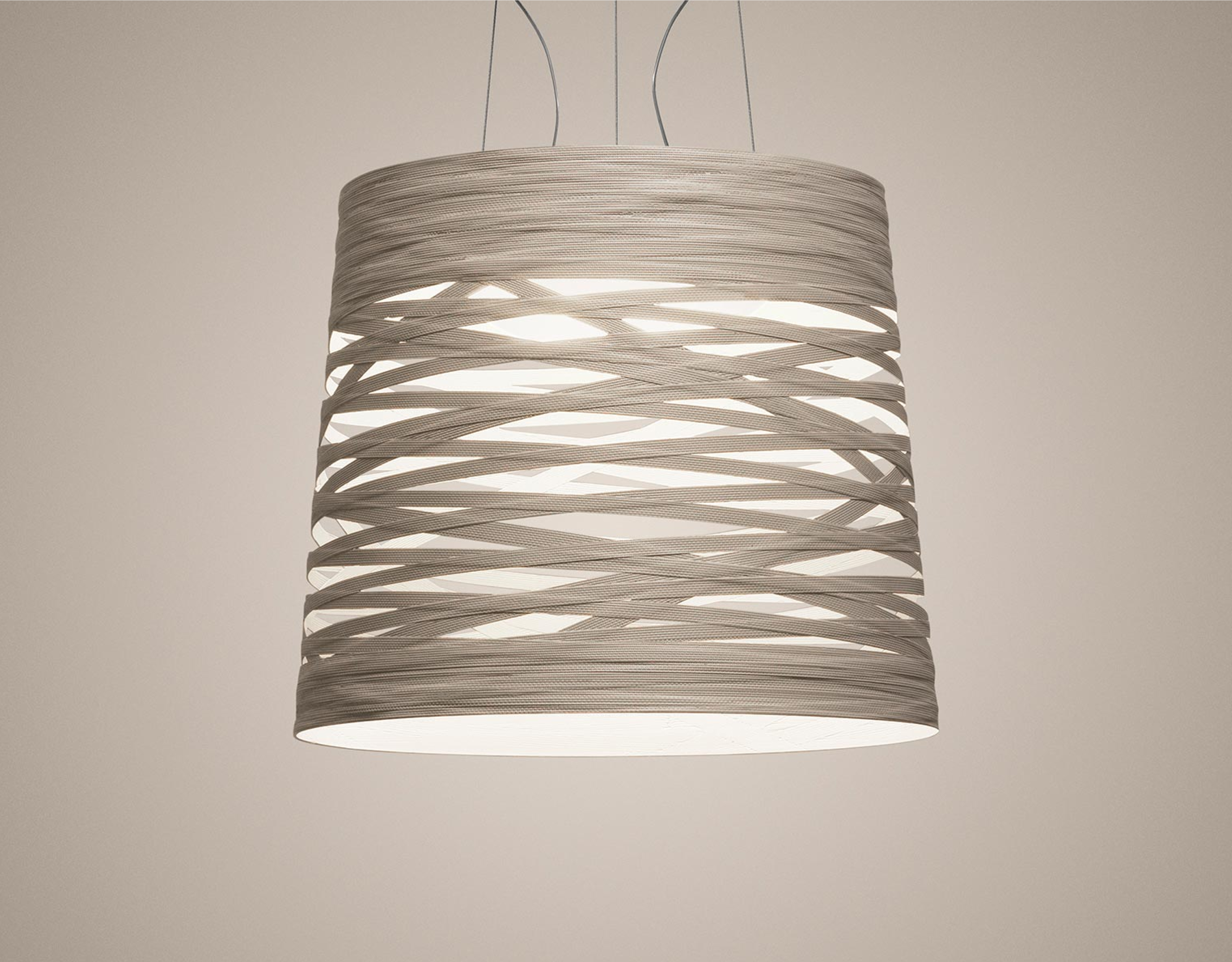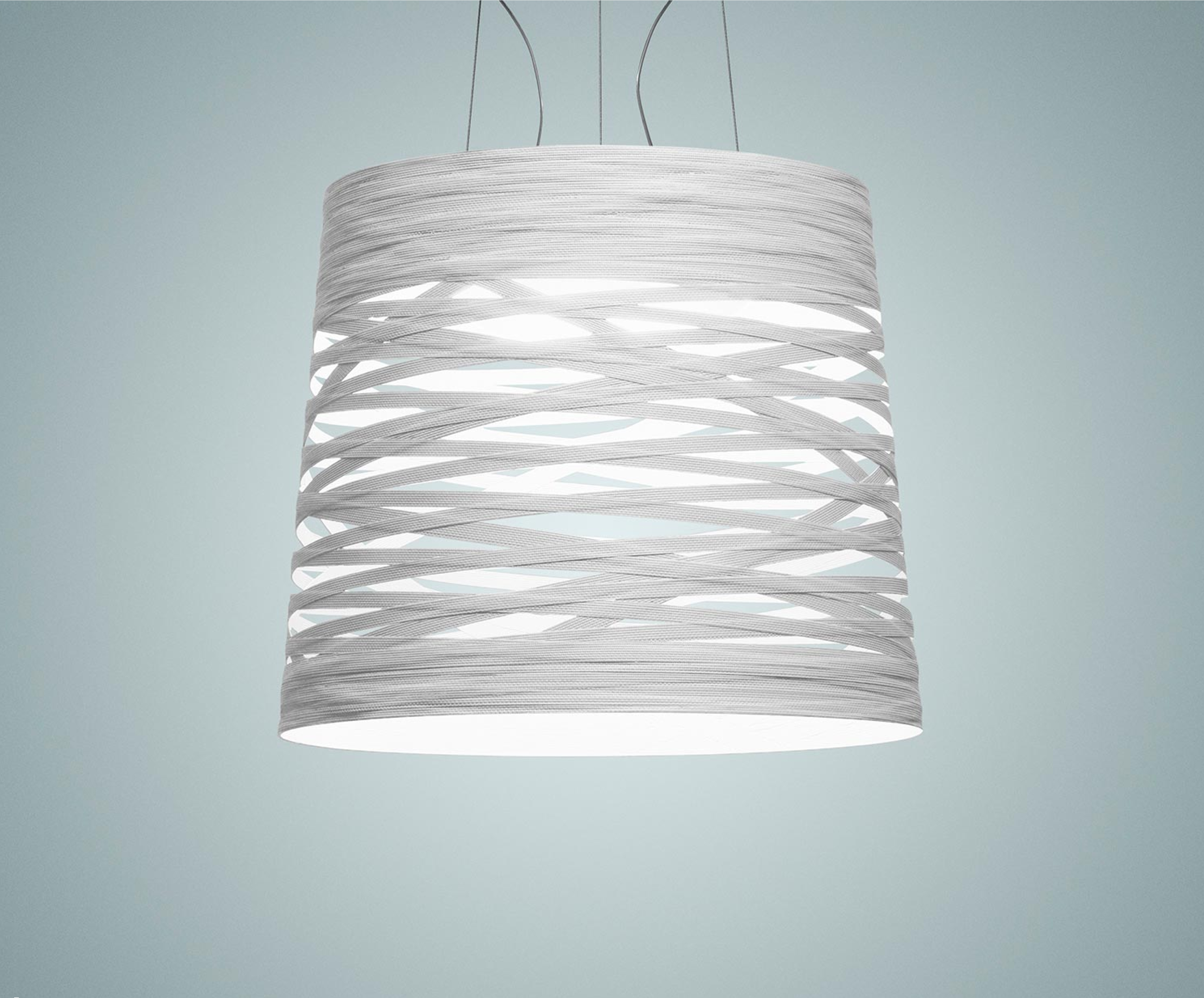 Μία μαγική σύμπλεξη fiberglass και ρητίνης που τυλίγεται σαν κορδέλα, το κρεμαστό φωτιστικό Tress Big δημιουργεί ένα εξαιρετικό παιχνίδι με σχήματα, φώτα και σκιές που διαχέονται στο περιβάλλον του. Μια πρωτότυπη ιδέα φωτισμού, ένα μοναδικό αντικείμενο που έχει ήδη γίνει σύμβολο.