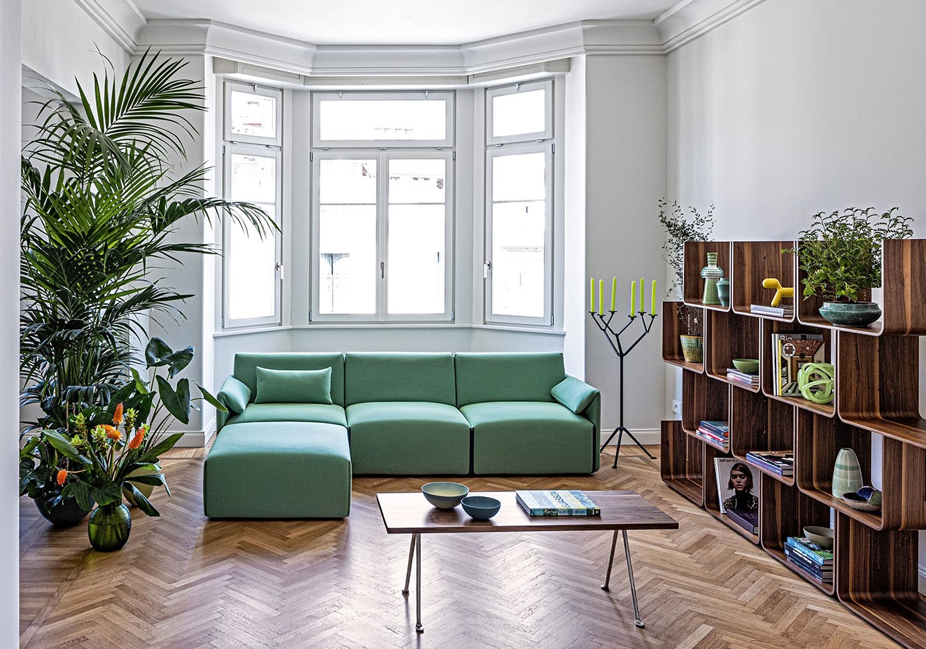 Το συναρμολογούμενο σύστημα καναπέ Costume διαθέτει συνολικά τέσσερα διαφορετικά στοιχεία: τη μονάδα καθίσματος, η οποία μπορεί να συμπληρωθεί με ένα αριστερό ή δεξί μπράτσο και ένα πουφ. Τα τέσσερα αυτά στοιχεία μπορούν να συναρμολογηθούν κατά βούλιση για να σχηματίσουν πολυάριθμους συνδυασμούς, ανάλογα με τις απαιτήσεις και τον χώρο. Ένας σύνδεσμος από πλαστικό, ο οποίος πιέζεται στις υποδοχές και στις τέσσερις γωνίες του καθίσματος, χρησιμεύει για τη σύνδεση των κομματιών και διατίθεται σε 3 χρώματα, πορτοκαλί, μπλε και μαύρο, ώστε να ταιριάζει ή να κάνει αντίθεση με το ύφασμα δημιουργώντας ένα ιδιαίτερο χαρακτηριστικό.