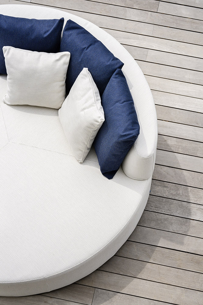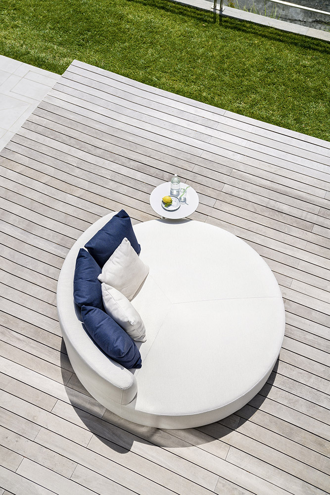 Φιλόξενο, άνετο και χαλαρό, το Belt daybed είναι ο πρωταγωνιστής του εξωτερικού χώρου. Οι καμπύλες και τα στρογγυλεμένα προφίλ δίνουν σχήμα σε ένα ευπροσάρμοστο έπιπλο, όπου μπορείτε να καθίσετε οποιαδήποτε στιγμή της ημέρας, ή να ξαπλώσετε, μόνος ή με συντροφιά. Ιδανικό για εξωτερική χρήση και ανθεκτικό στις καιρικές συνθήκες, διαθέτει εσωτερικά ένα σύστημα αποστράγγισης από καουτσούκ και μασίφ ξύλο okumè.