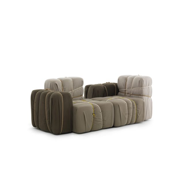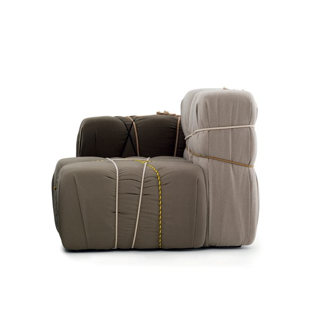Η Contropakko είναι μια πολυθρόνα εμπνευσμένη από την κλασική σύνθεση χαρτοκιβωτίων, δεμένα με κορδέλες και σχοινιά, άνετη και παιχνιδιάρικη, ταιριάζει απόλυτα σε κάθε περιβάλλον. Διατίθεται κατόπιν παραγγελίας μόνο στη συγκεκριμένη χρωματική παραλλαγή και με το μπράτσο πάντα τοποθετημένο δεξιά. Τα υφάσματα δεν είναι αφαιρούμενα.