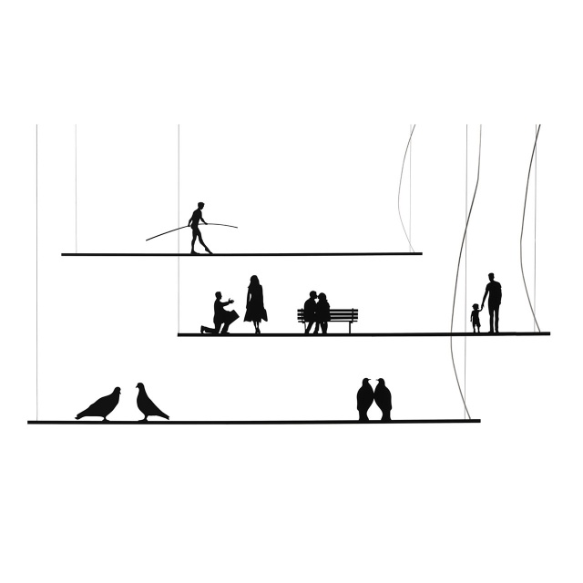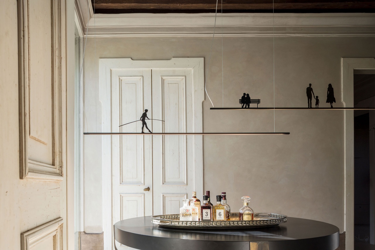 Το Phil είναι ένα κρεμαστό φωτιστικό σε μαύρο μέταλλο. Μια ράβδος που απλώνεται στο χώρο και ιστορίες που την διασχίζουν, τοποθετημένη μεταξύ φαντασίας και πραγματικότητας. Σιλουέτες με οπίσθιο φωτισμό ξεχωρίζουν στο χώρο και αφηγούνται ιστορίες για την καθημερινή ζωή.