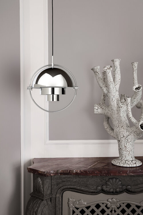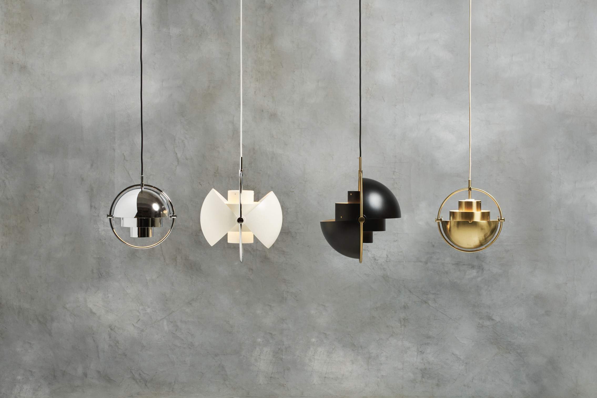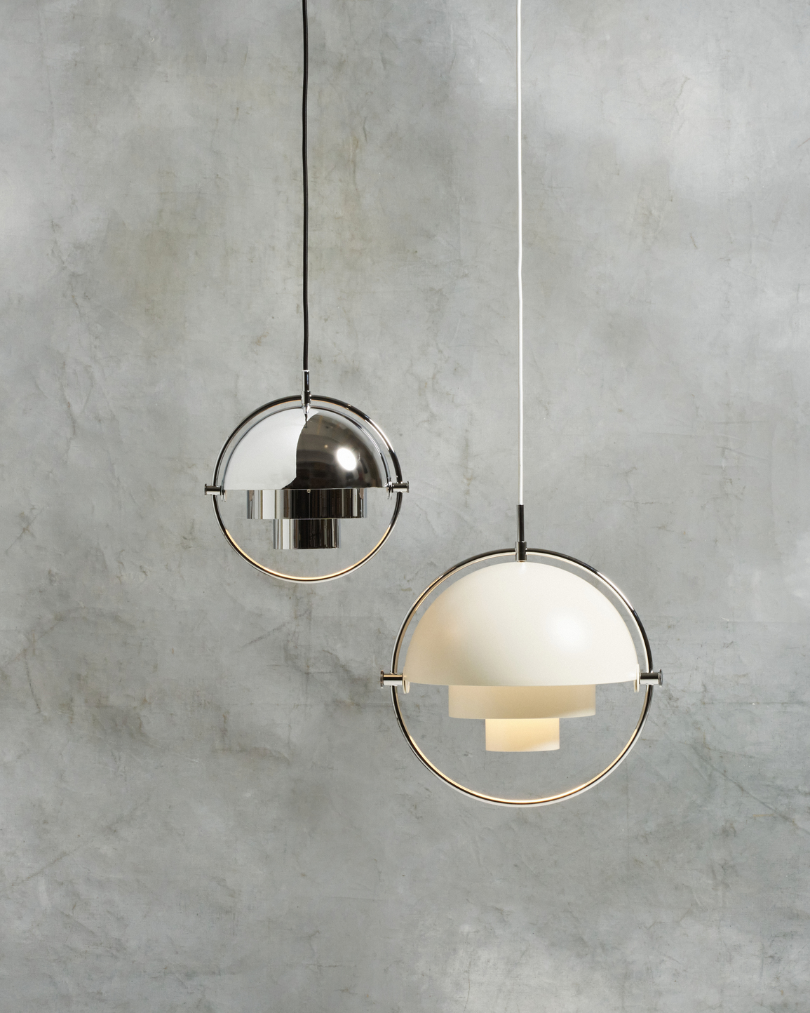 Η συλλογή φωτιστικών Multi-Lite σχεδιασμένη το 1972 από τον Louis Weisdorf αντιπροσωπεύει τη «χρυσή εποχή» του δανέζικου design και σίγουρα είναι το επίκεντρο κάθε χώρου. Ένας μεταλλικός δακτύλιος, δύο ομόκεντροι κύλινδροι και ένα ζευγάρι περιστρεφόμενων ημισφαιρίων σχηματίζουν τα παιχνιδιάρικα και ευέλικτα φωτιστικά. Η απλή περιστροφή των ημισφαιρίων μεταμορφώνει το φως, επιτρέποντας το να κατευθύνεται προς τα πάνω, προς τα κάτω ή ακόμα και σε ασύμμετρες δέσμες.