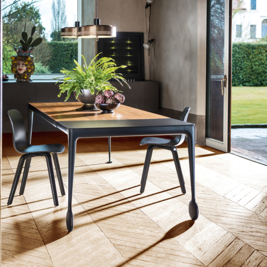 Εκθεσιακή Τραπεζαρία Big Will της Magis. Διάσταση 200x100cm με καρυδένιο τοπ και μαύρη σταθερή βάση.