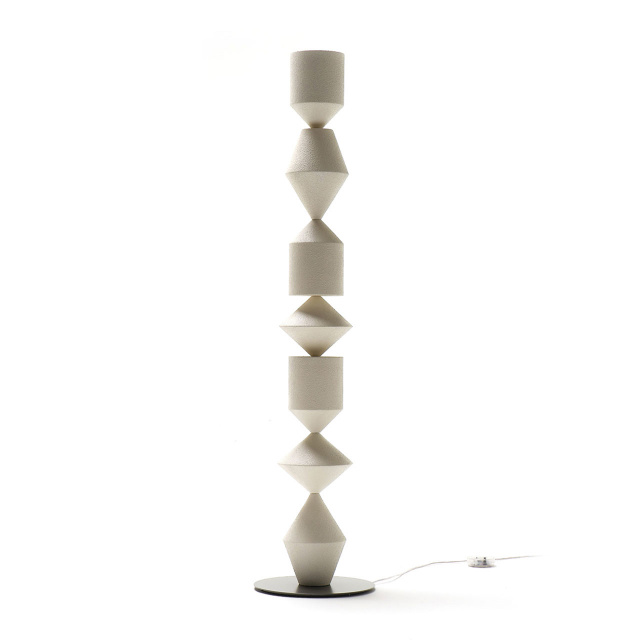 Επιδαπέδιο φωτιστικό έμμεσου φωτισμού που συνδυάζει την λειτουργικότητα με την έντονη προσωπικότητα. Αυστηρό αλλά παιχνιδιάρικο, ανδρικό και θηλυκό, κατάλληλο για κάθε περιβάλλον. Η δέσμη φωτός εξατομικεύει οτιδήποτε φωτίζει με αποφασιστική κομψότητα.