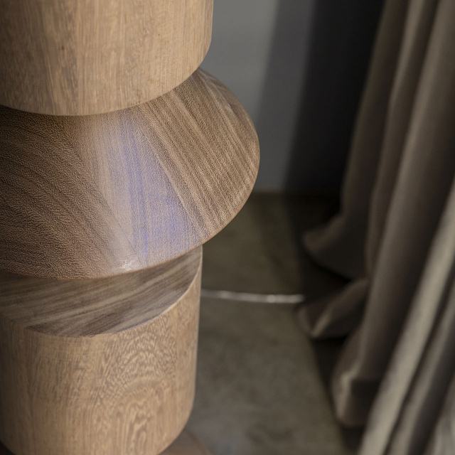 Διατίθεται σε μασίφ ξύλο Iroko ή σε άκαμπτη πουλιουρεθάνη με ανάγλυφο φινίρισμα σε χρώμα ιβουάρ.