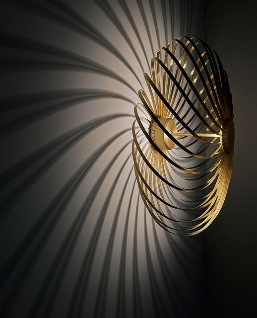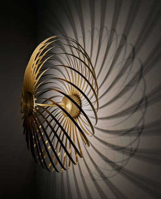 Το νέο επιτοίχιο φωτιστικό της συλλογής Spring είναι ατασκευασμένο και αυτό εξ'ολοκλήρου απο ανοξείδωτο ατσάλι. Αποτελείται απο ατσάλινες λωρίδες οι οποίες περιστρέφονται σπυρωτά δημιουργώντας ένα εντυπωσιακό αποτέλεσμα. Αυτή η κατασκευή τους προσφέρει την δυνατότητα να αλλάζουν σιλουέτα με μια κίνηση και να δημιουργούν σκιές που διαχέονται στον χώρο σαν να σχεδιάστικαν από σπιρογράφο.