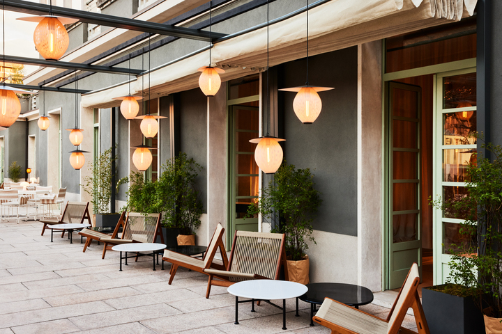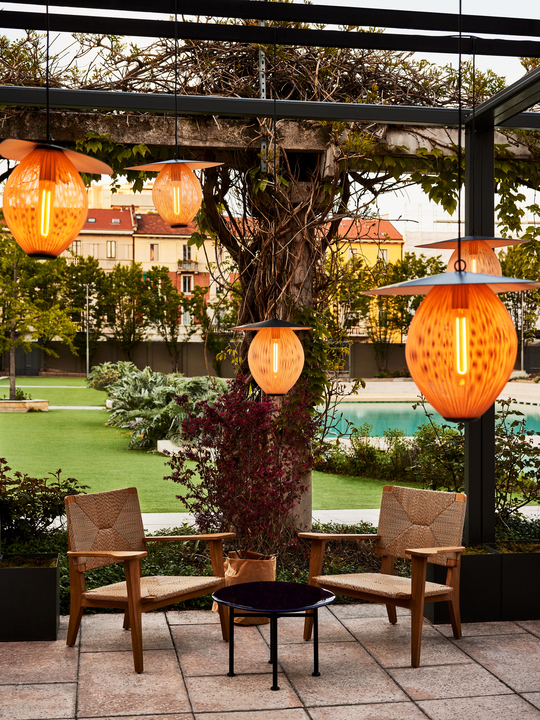 Βασισμένα στην εκκεντρική, μοντέρνα και γλυπτική συλλογή Satellite που παρουσιάστηκε για πρώτη φορά το 1953, το Satellite Outdoor Pendant και το Satellite Outdoor Floor Lamp είναι τα πρώτα design φωτιστικά της GUBI που δημιουργήθηκαν και πιστοποιήθηκαν ειδικά για χρήση σε εξωτερικούς χώρους. Παραμένοντας πιστά στην αρχική σχεδιαστική ιδέα του Mathieu Matégot, διαθέτουν ένα ωοειδές αμπαζούρ από διάτρητο φύλλο ανοξείδωτου χάλυβα, που καλύπτεται με ένα καπάκι αλουμινίου που βοηθά στην κατεύθυνση του φωτός. Παιχνιδιάρικα και μοντέρνα ακόμη και 70 χρόνια μετά την πρώτη τους δημιουργία, είναι ιδανικά σε σκεπαστές αυλές, αίθρια, βεράντες.