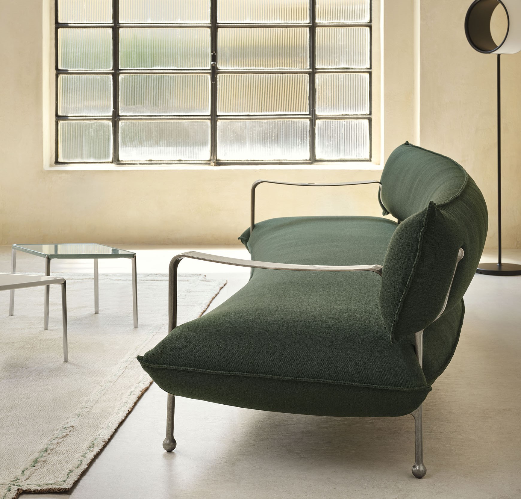 Ο καναπές Riace που πήρε το όνομά του από τα δύο μυστηριώδη χάλκινα γλυπτά που βρέθηκαν στη νότια Ιταλία και που χρονολογούνται από τον 5ο αιώνα π.Χ. και είναι, με τον τρόπο του, το ίδιο συναρπαστικός και απροσδόκητος. Όχι μόνο σαγηνεύει χάρη στην κομψότητα των λευκο-μπρούτζινων μπράτσων του και της καμπυλωτής δομής του, αλλά εκπλήσσει και με τις μεγαλειώδεις διαστάσεις του.