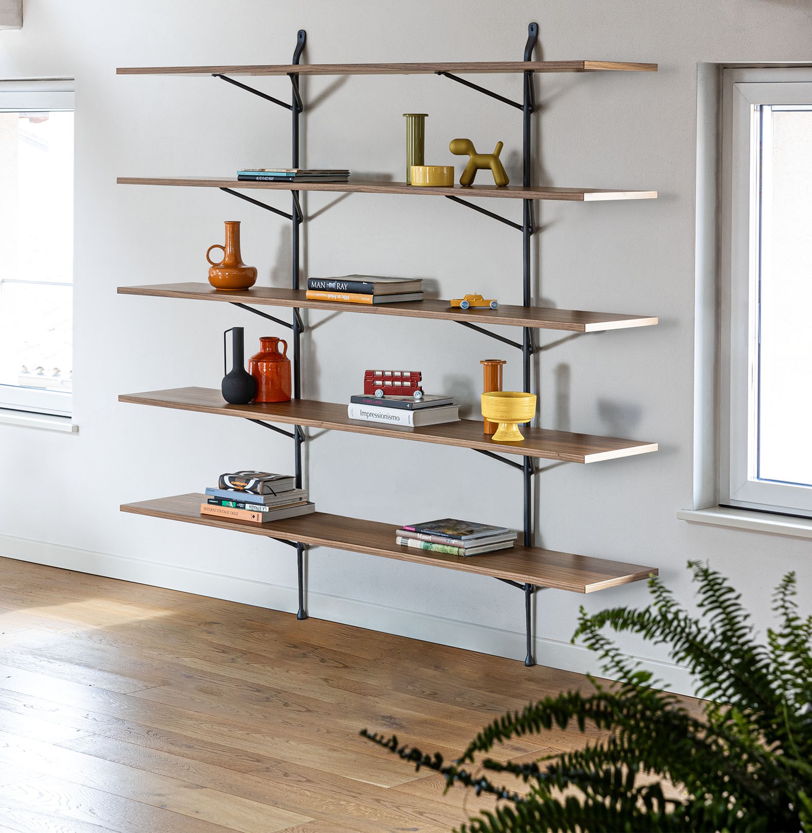 Τα ράφια είναι σε MDF, καρυδιά ή μαύρο φινίρισμα.