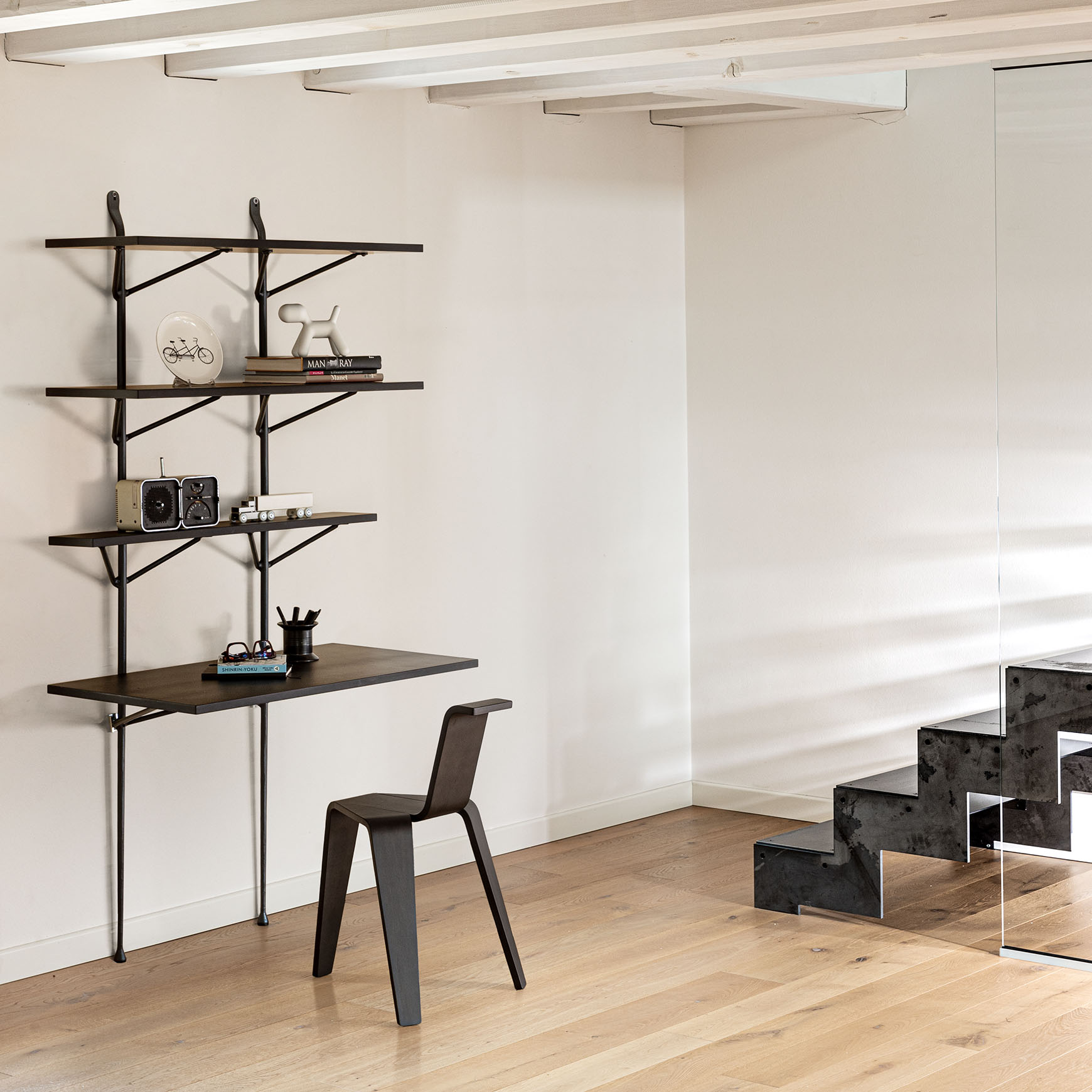Η βιβλιοθήκη διατίθεται σε δύο διαστάσεις καθώς και σε έκδοση με επιφάνεια εργασίας, με σκελετό από σφυρήλατο σίδερο σε γκρι ανθρακί φινίρισμα.