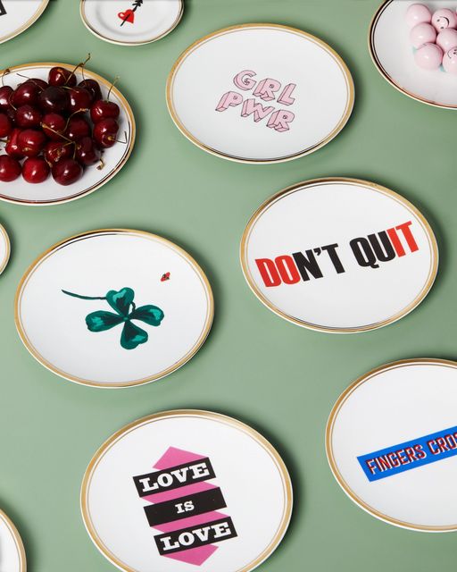 Νέα σειρά πιάτων με έξυπνα και εμπνευσμένα μηνύματα για μια όμορφη μέρα. Περιμετρικά το αγκαλιάζουν δυο χρυσές γραμμές προσφέροντας ένα κομψό αποτέλεσμα.